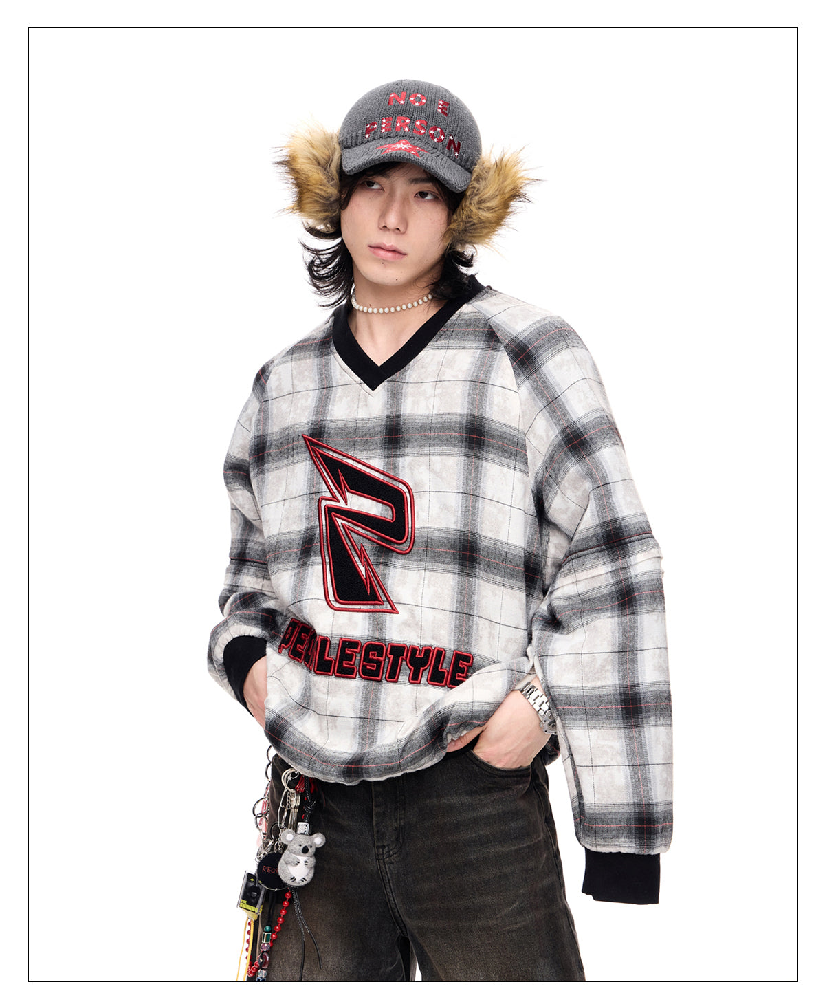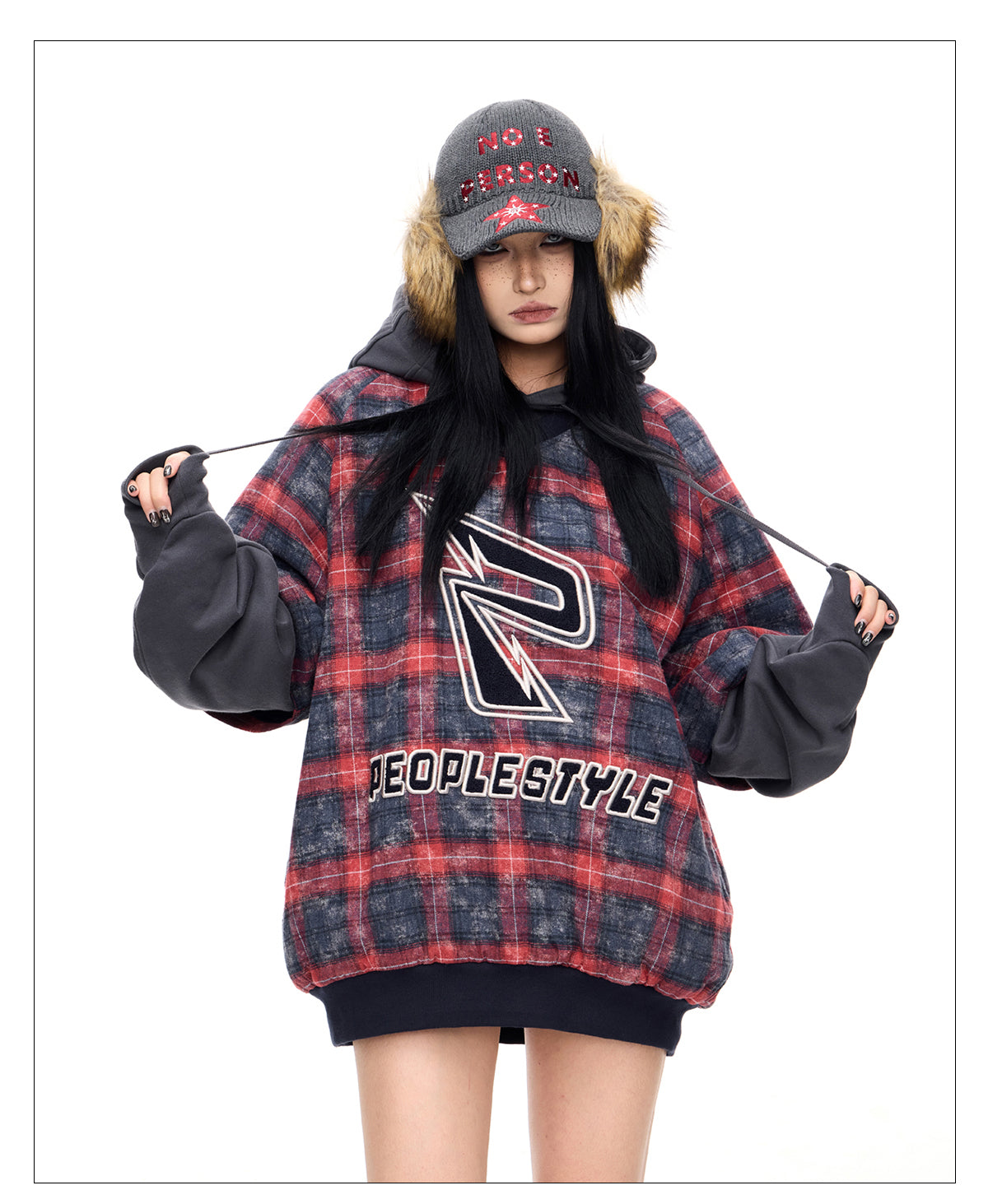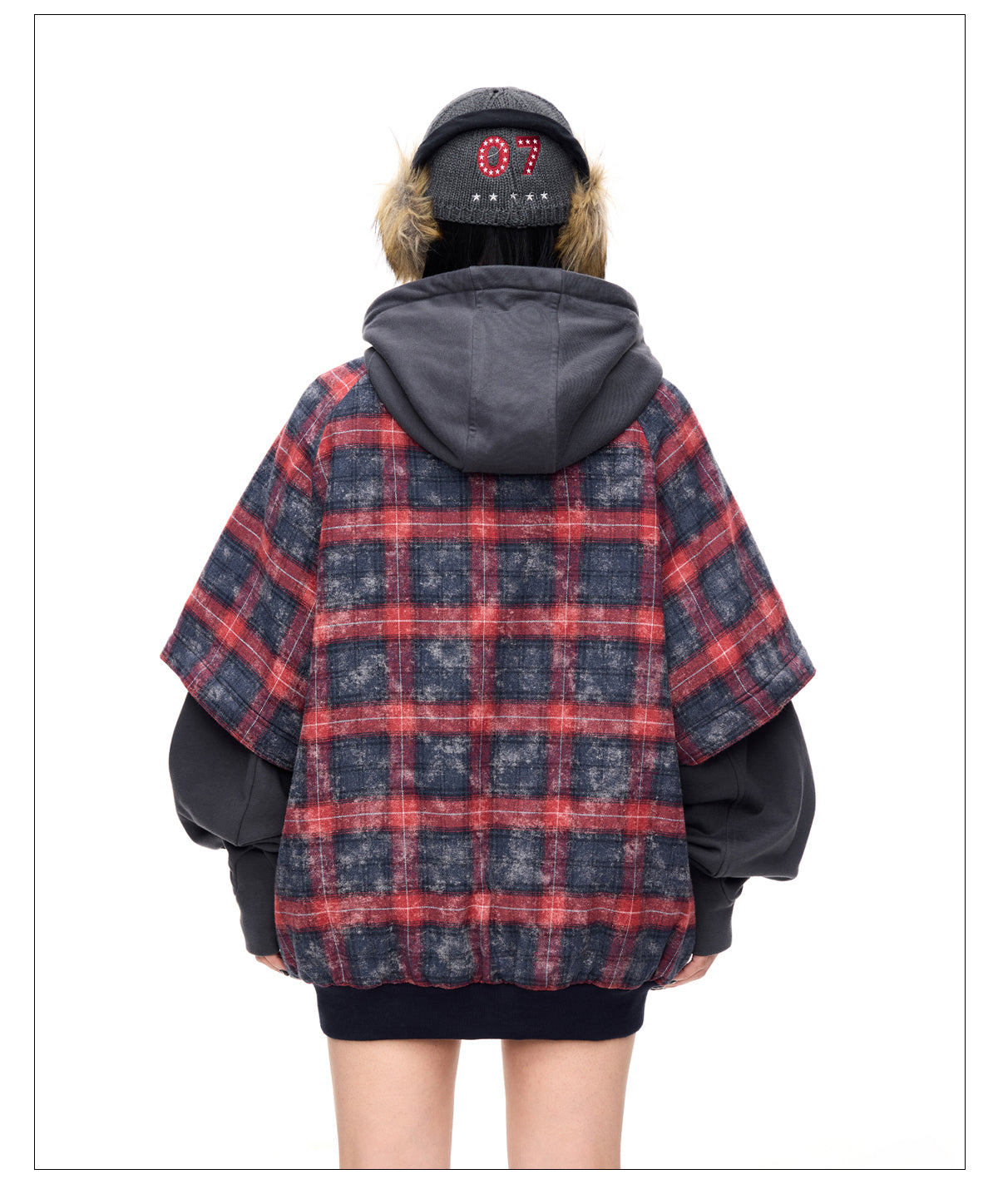 Detachable checkered thickened sweatshirt