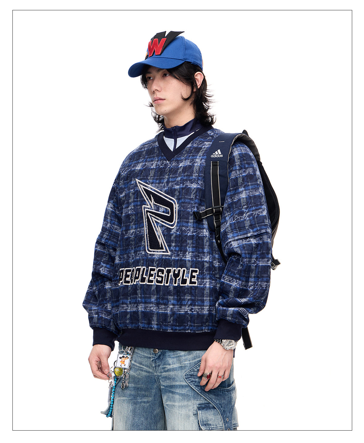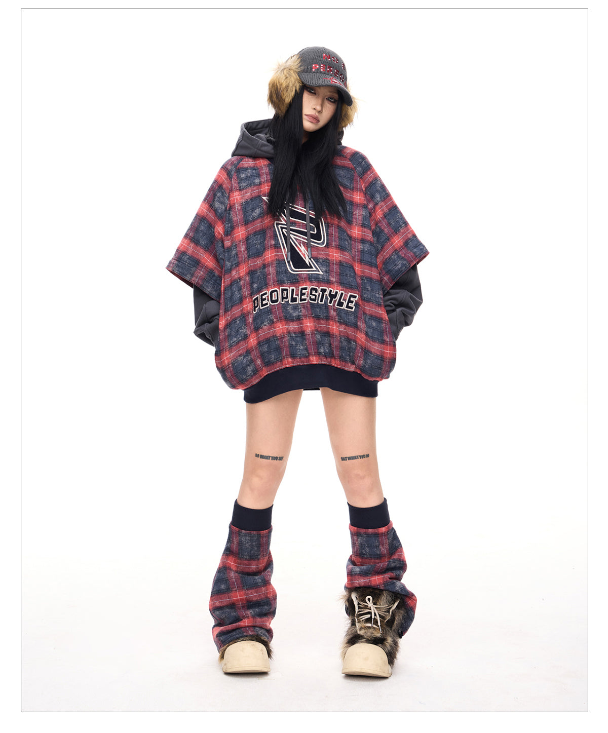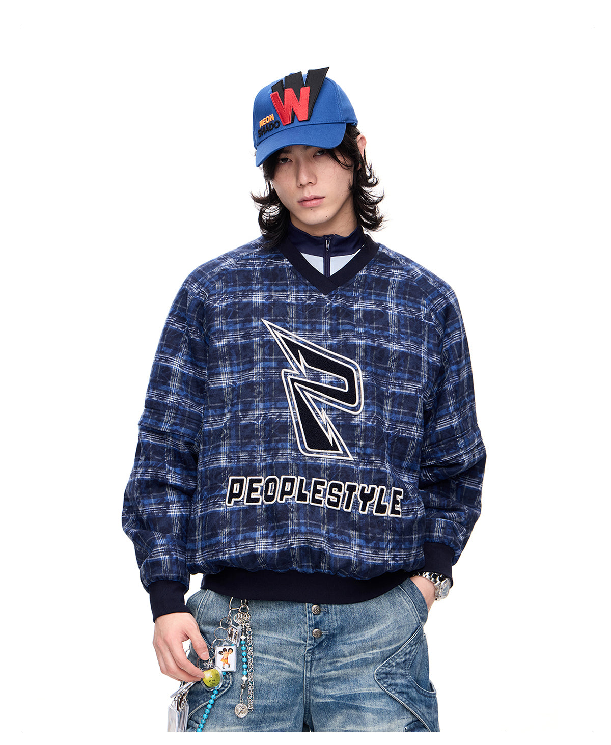 Detachable checkered thickened sweatshirt