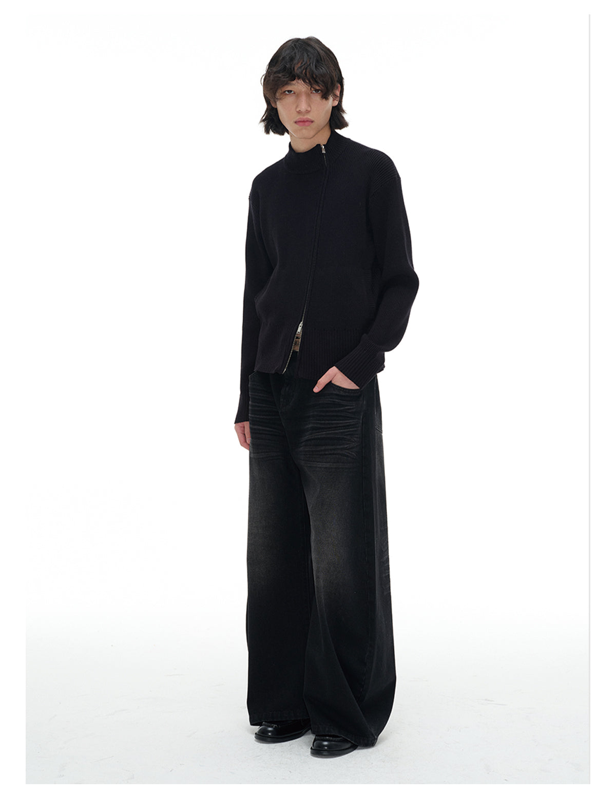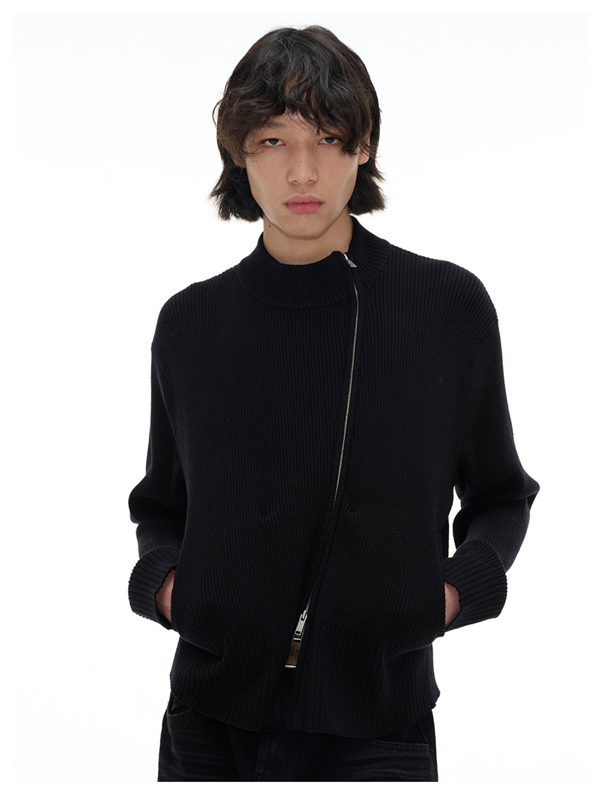 Diagonal Zipper Cardigan