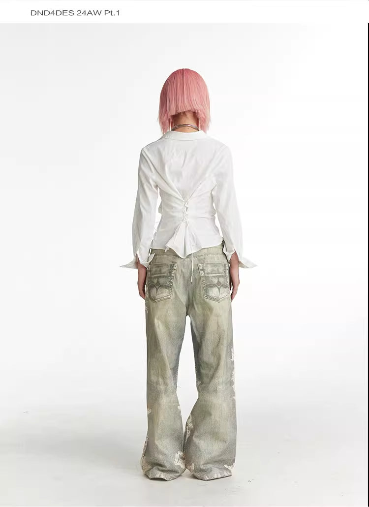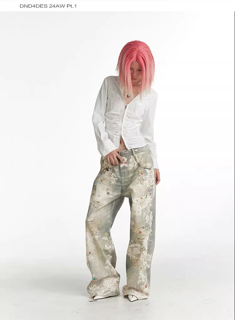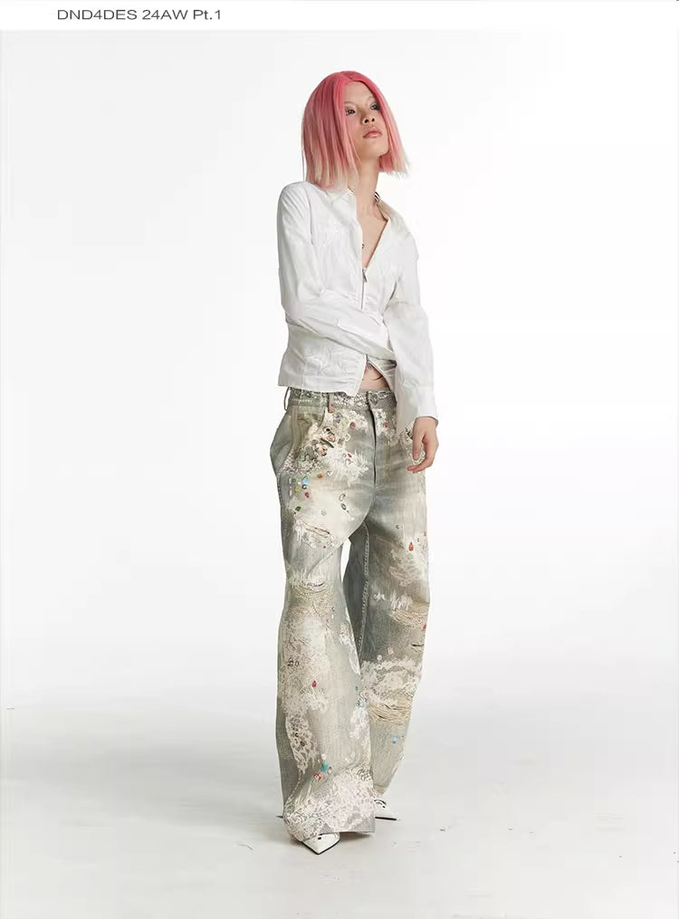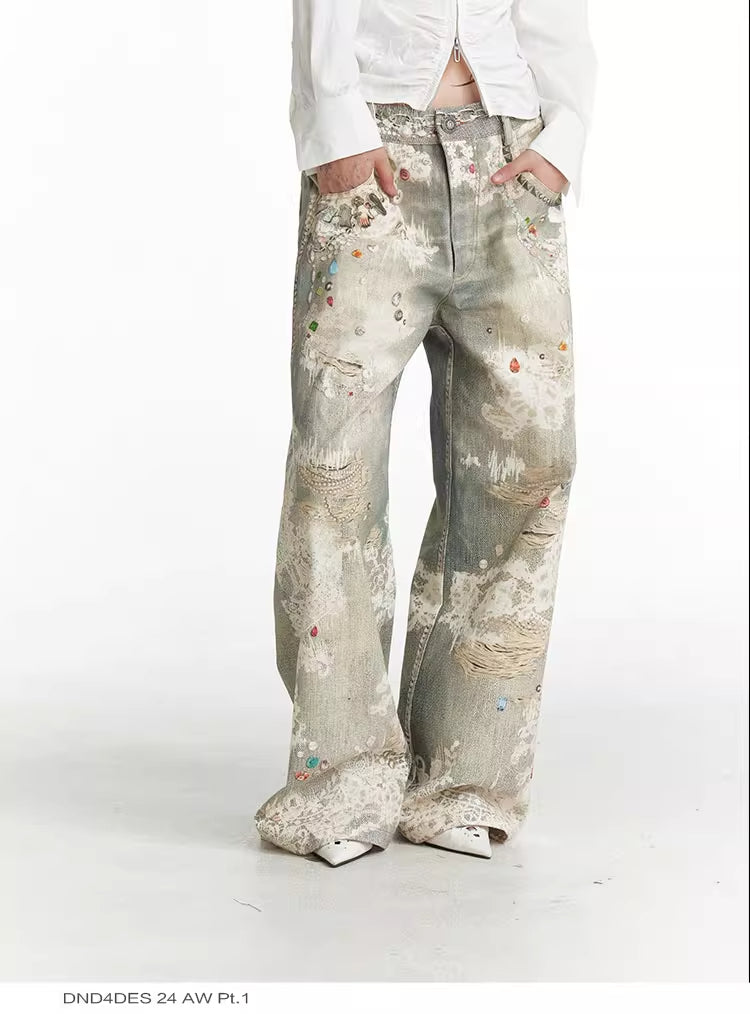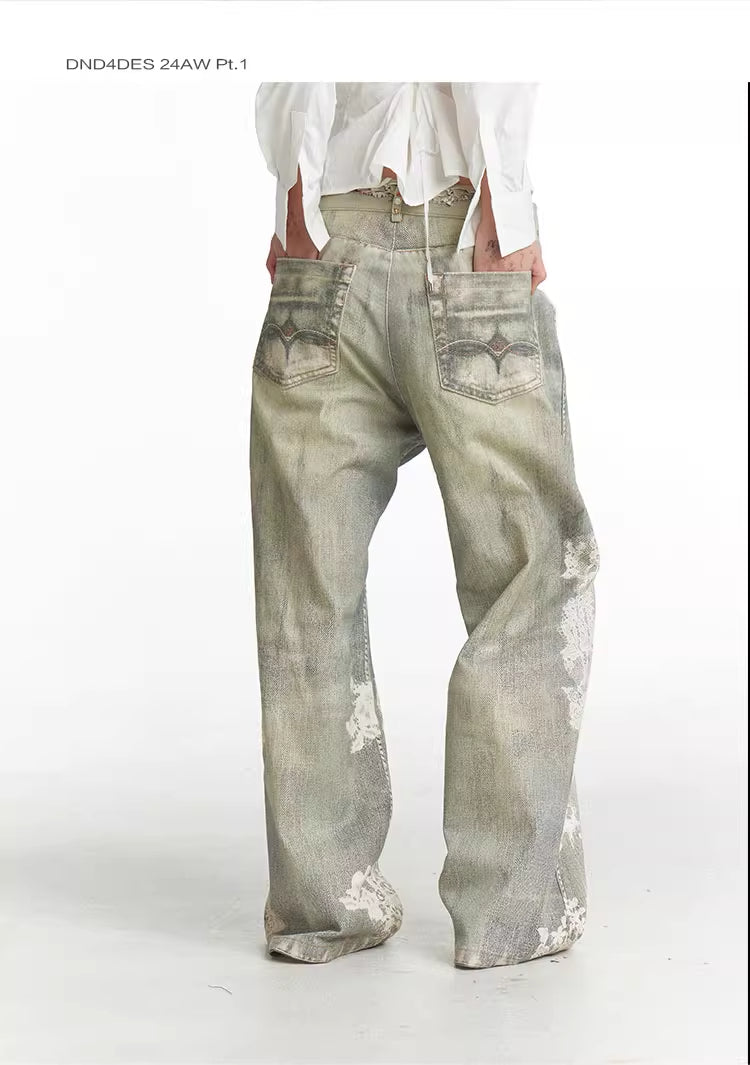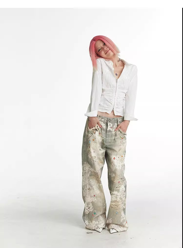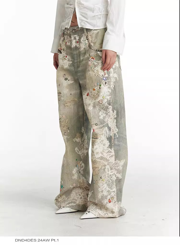 Lace Pattern Straight Bootcut Jeans