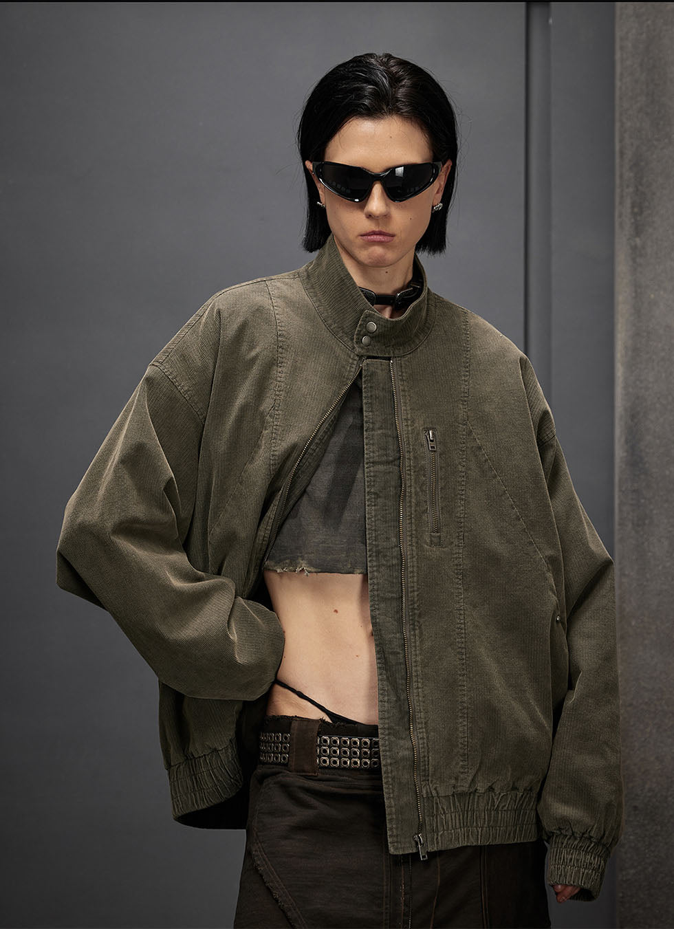 Luxury corduroy old high collar jacket