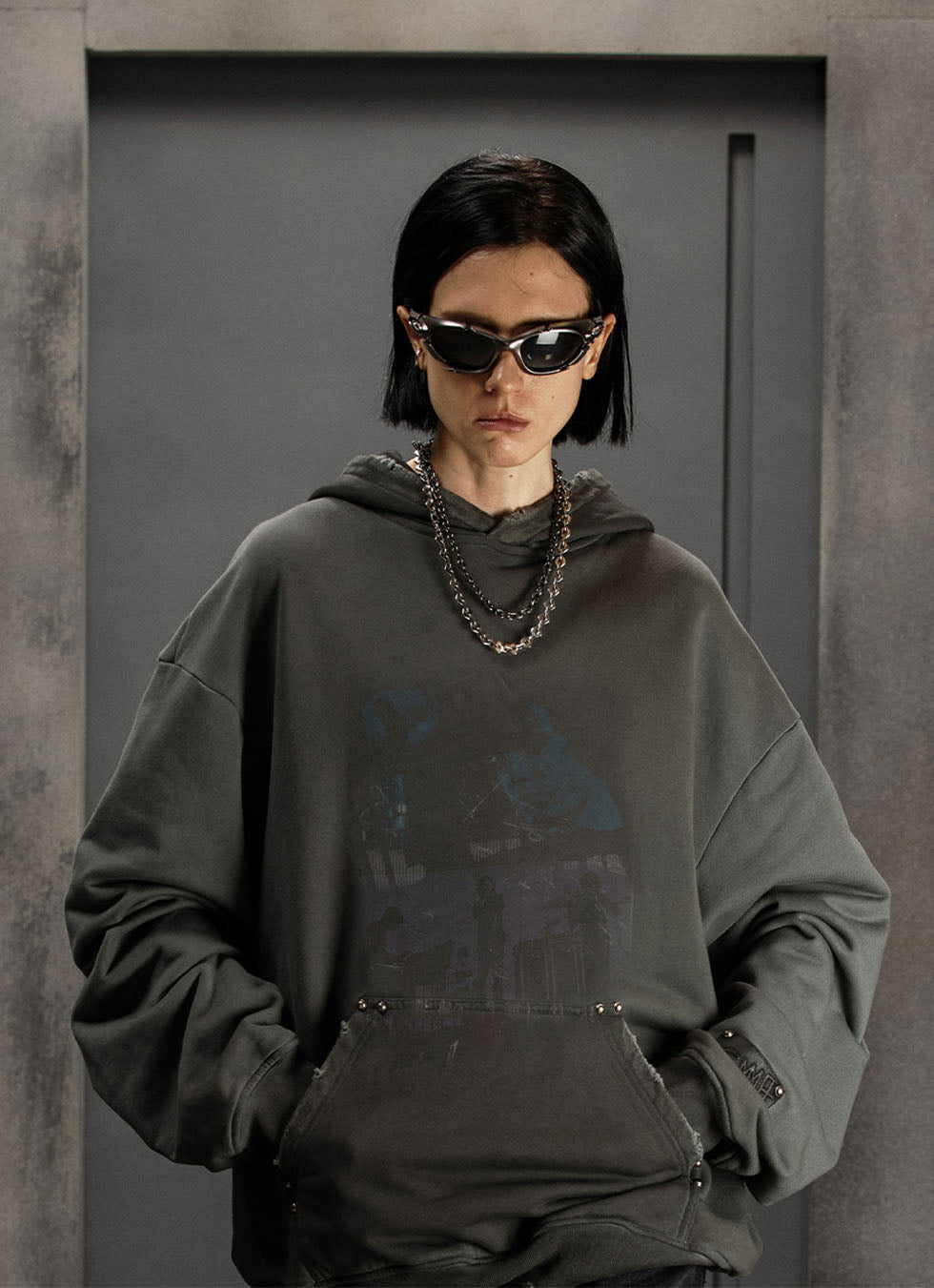 Rock Band Print Loose Hoodie