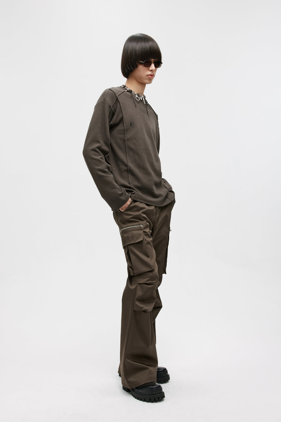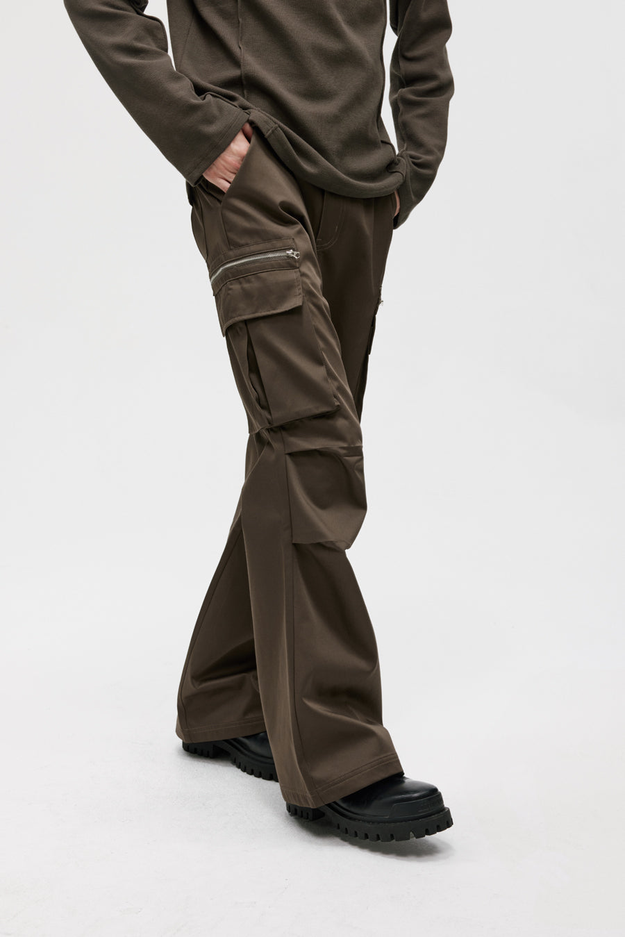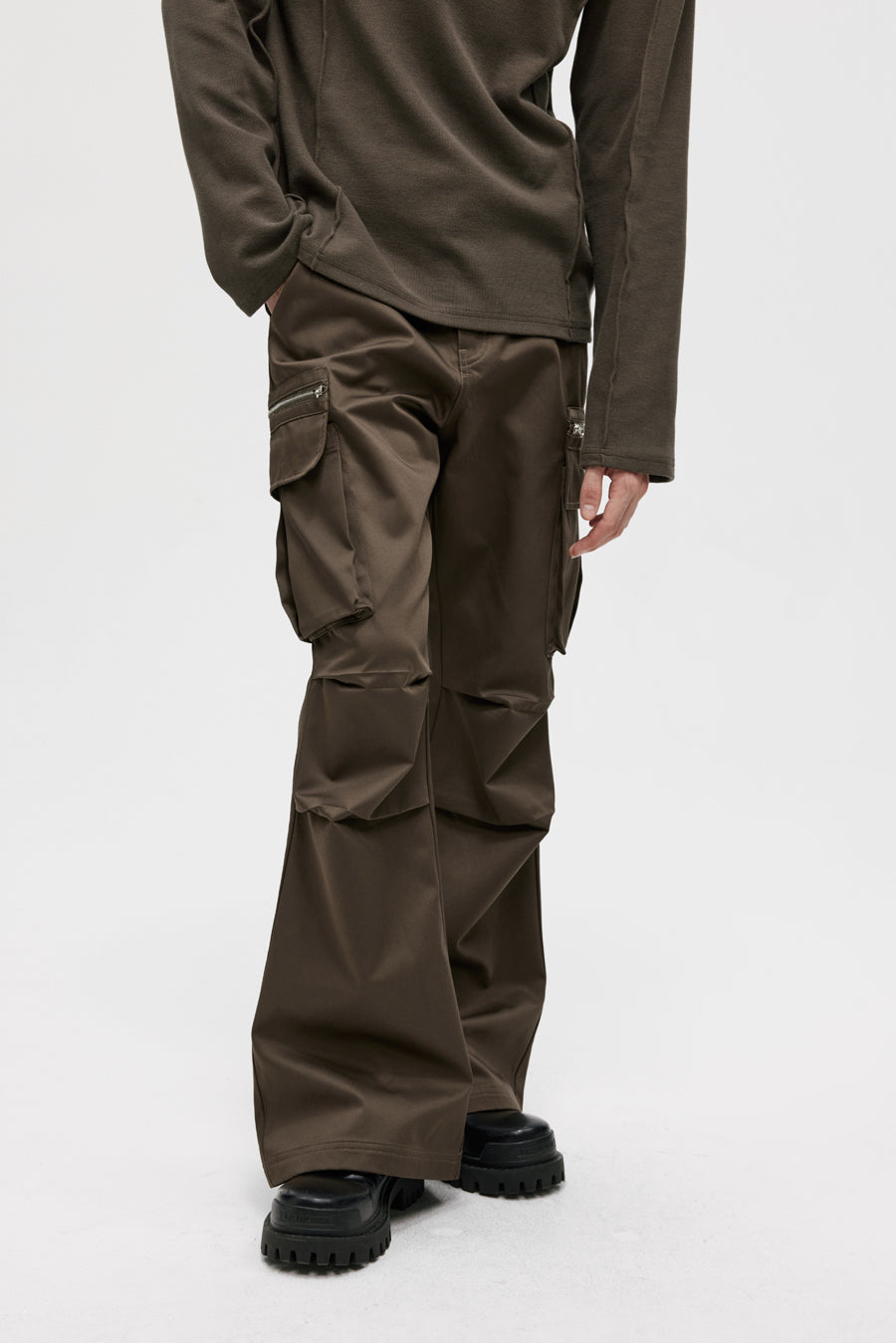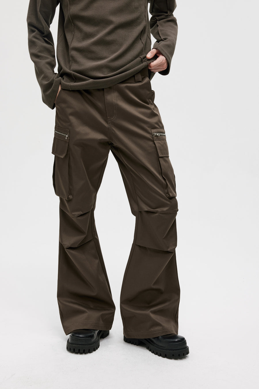 Three-dimensional patch pocket casual pants