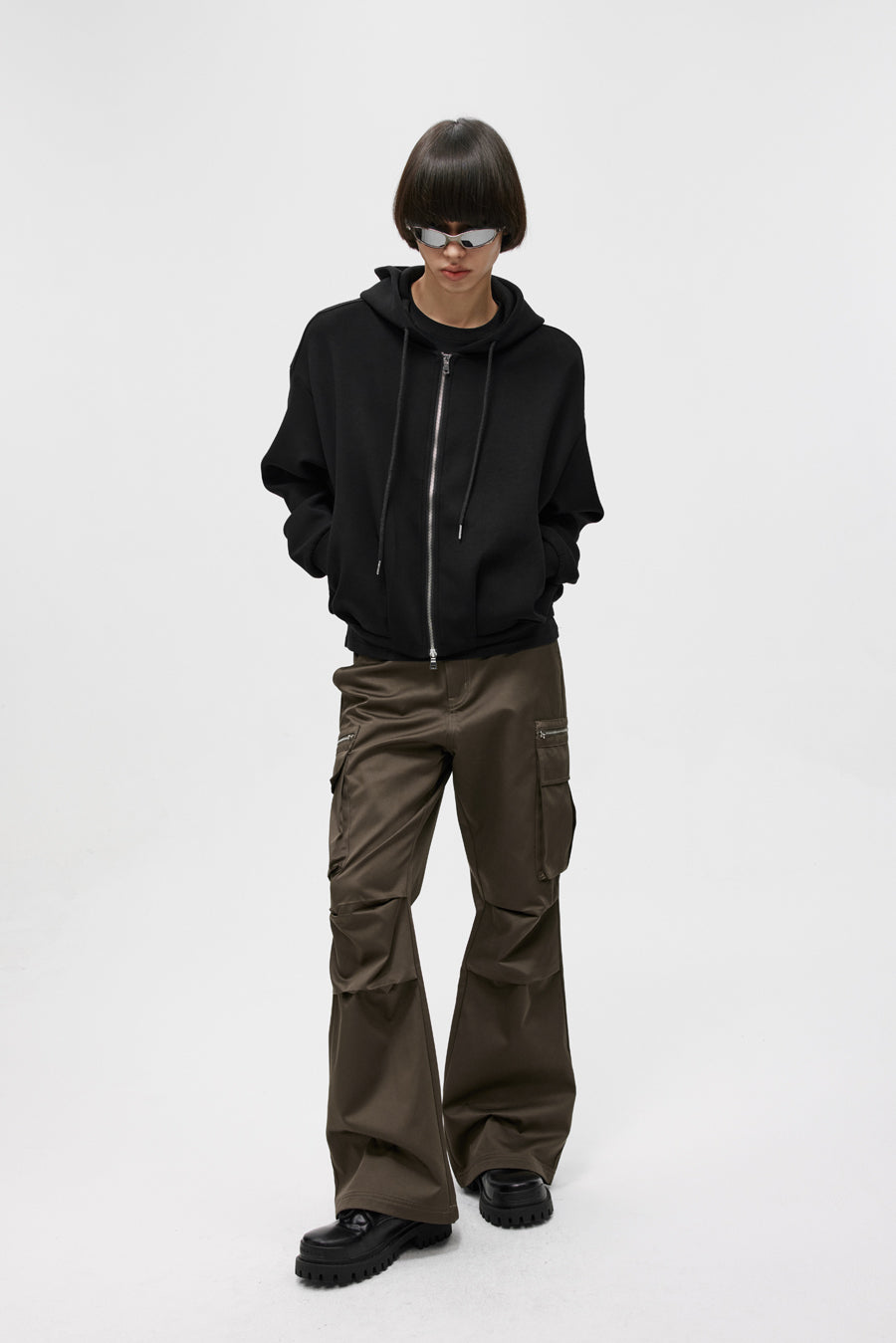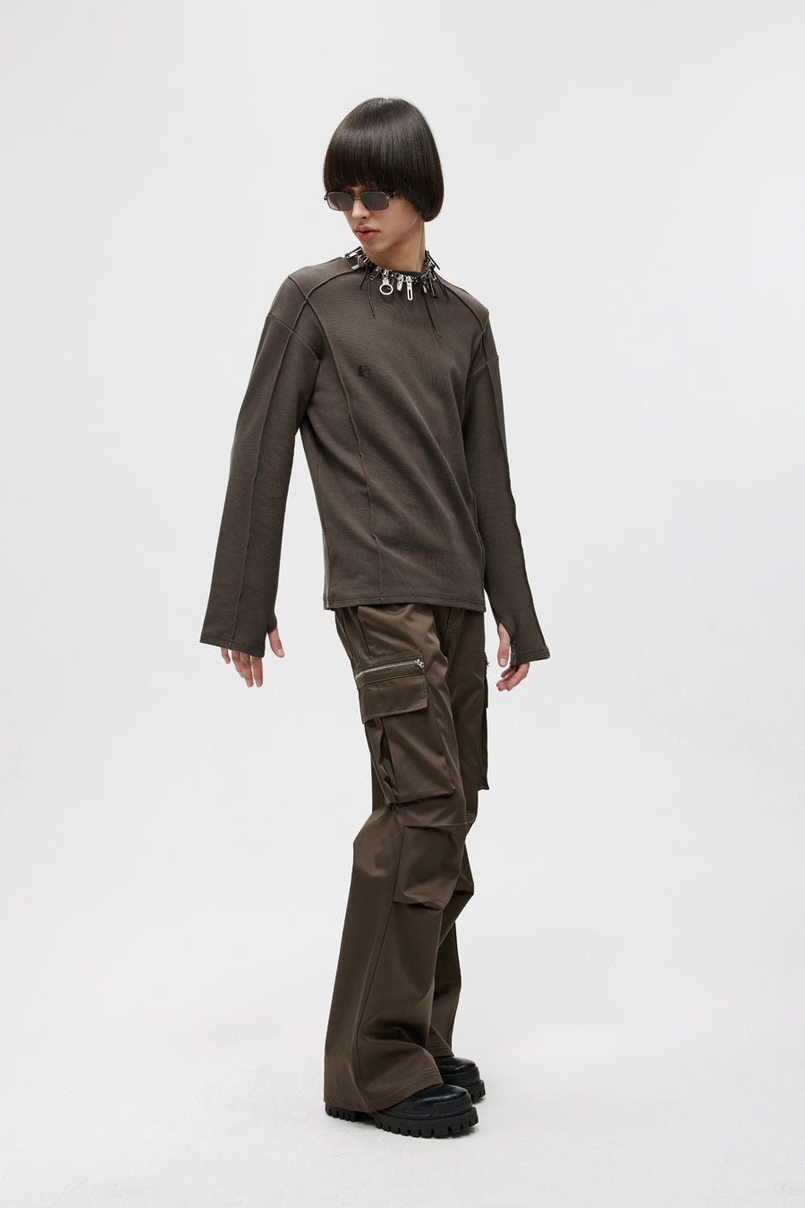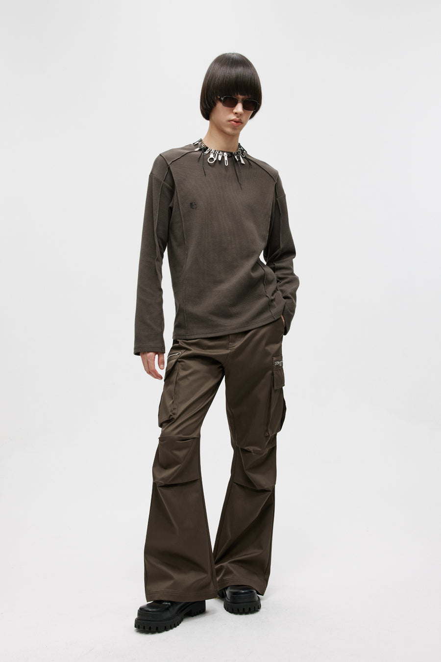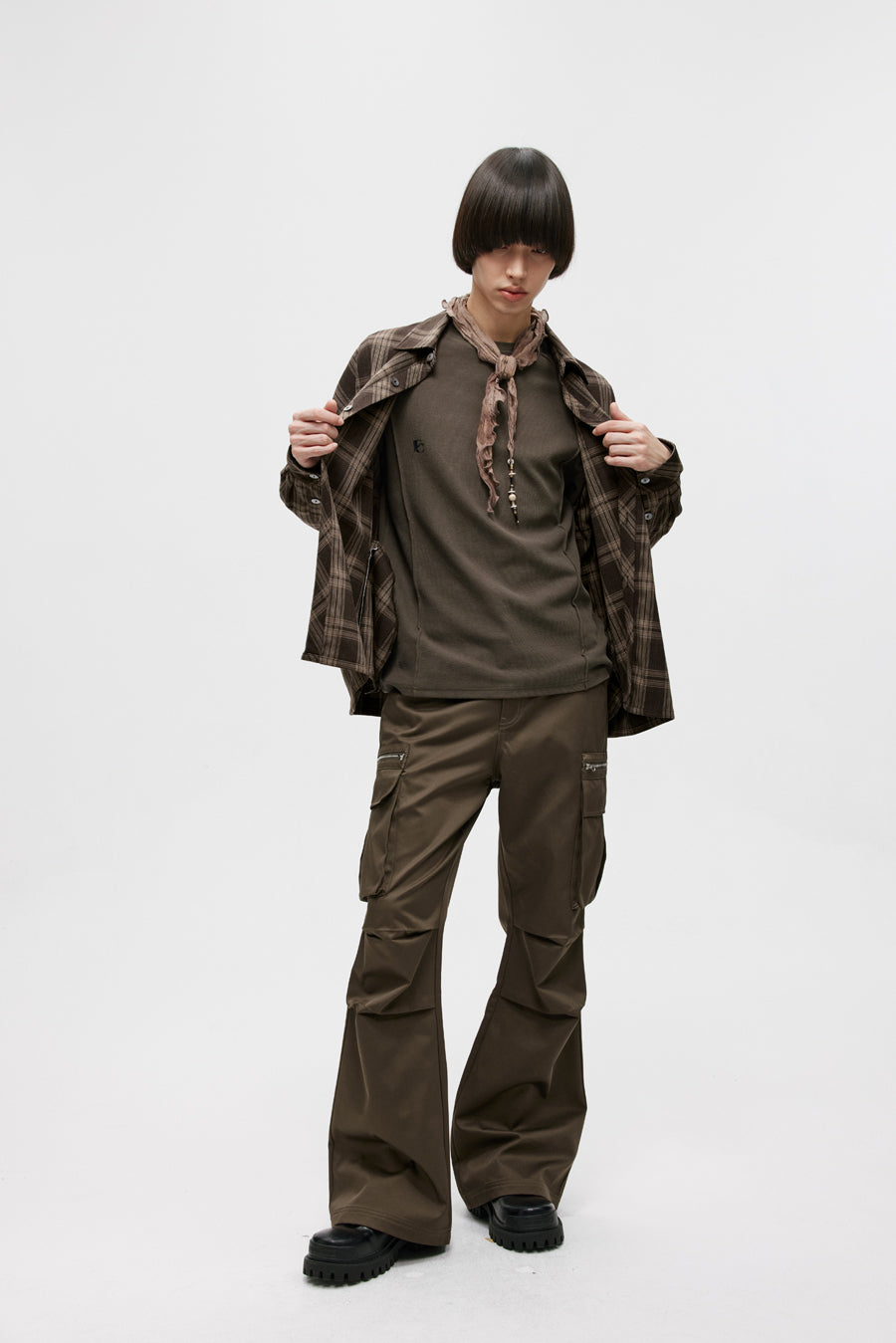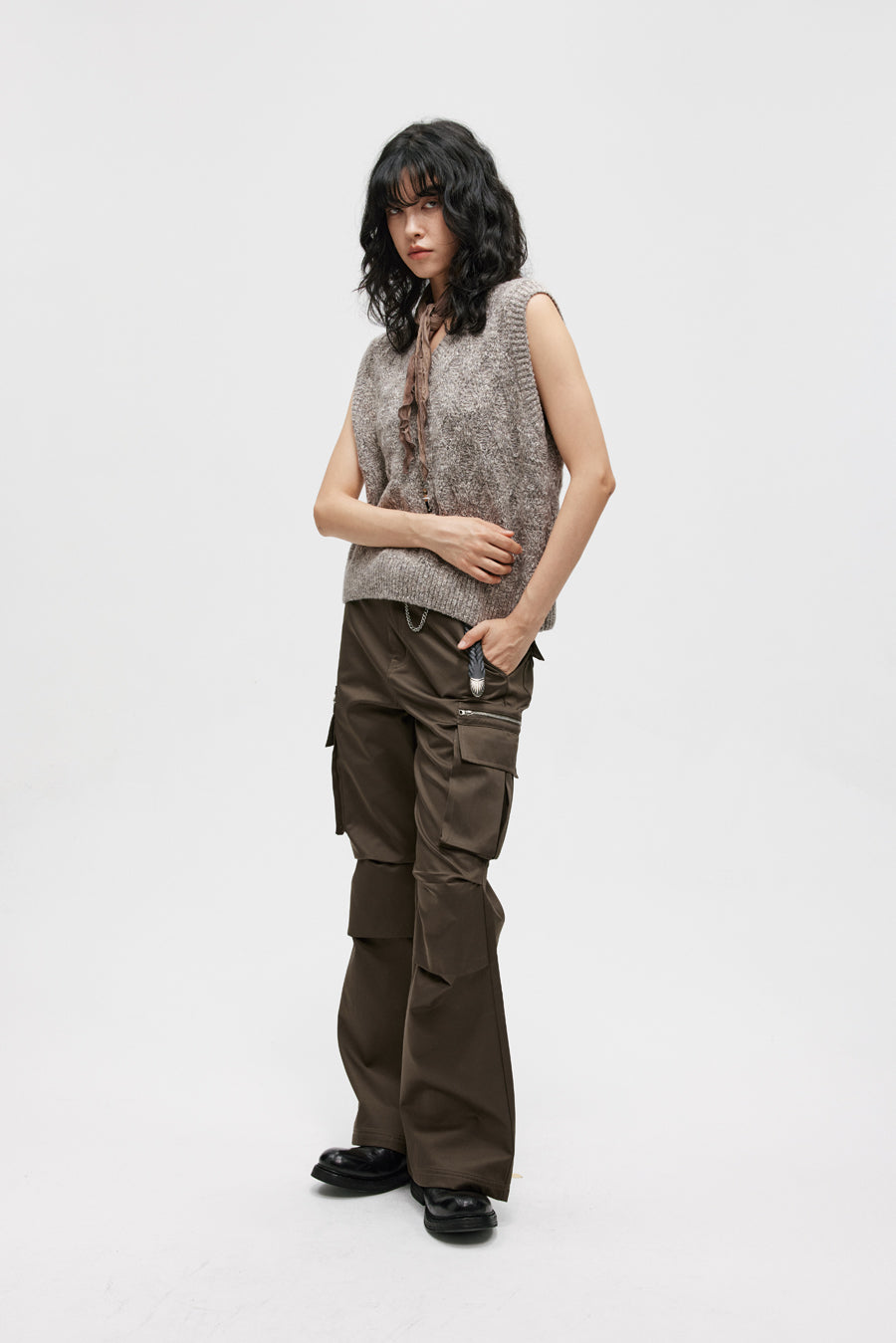 Three-dimensional patch pocket casual pants