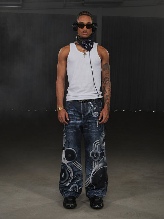 Retro Full Print Jeans