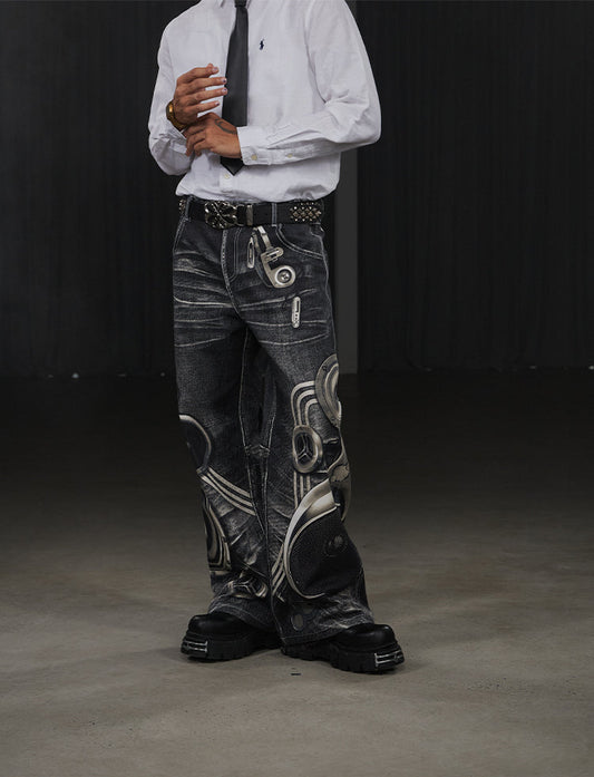 Full Print Loose Retro Jeans