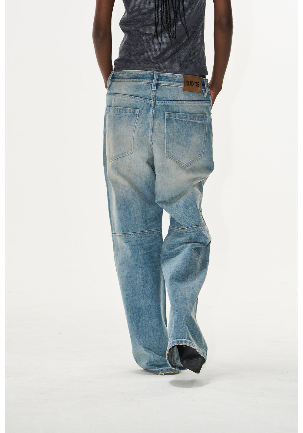 Patchwork Leather Embroidery Jeans
