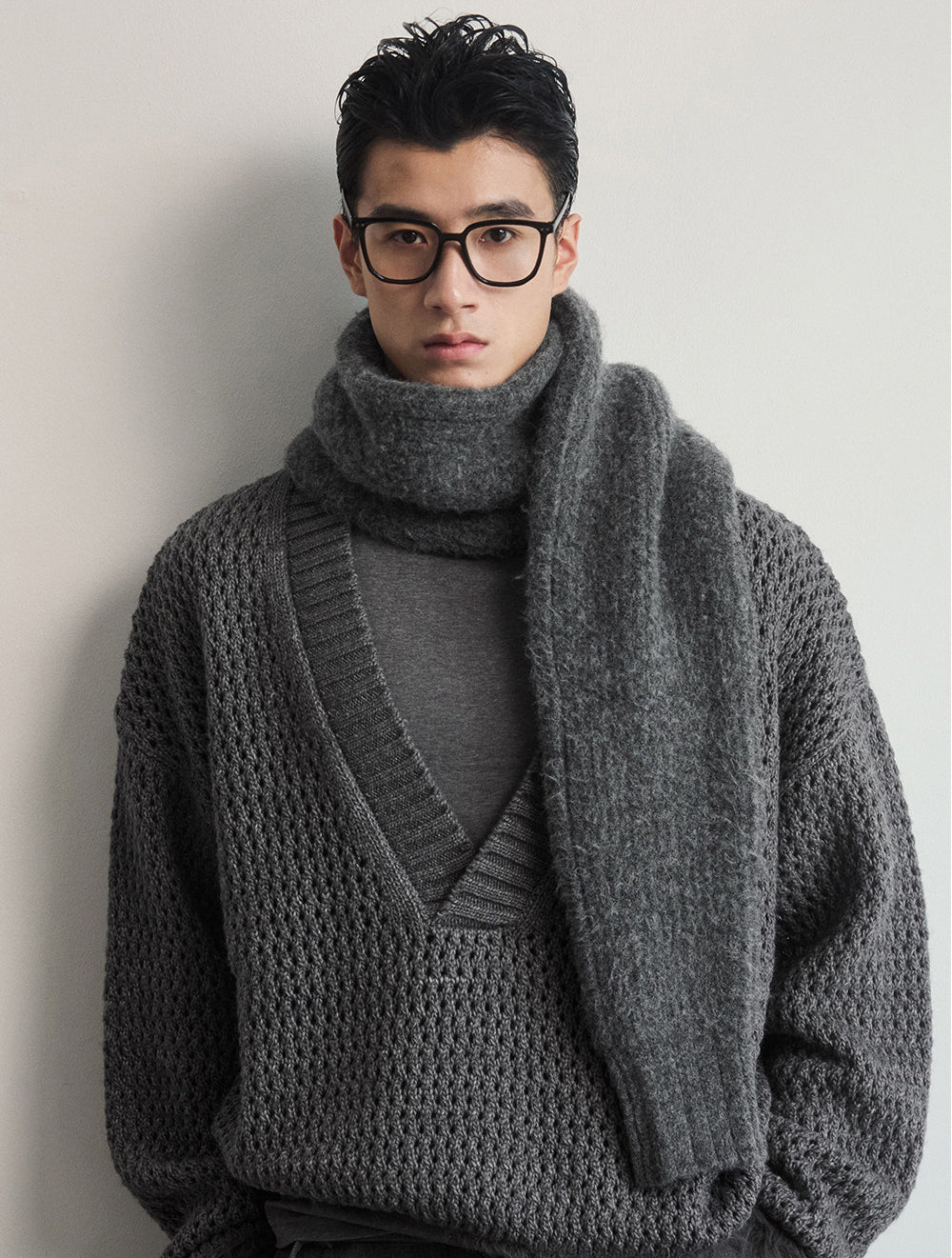 Thick Wool Blend Knit Scarf
