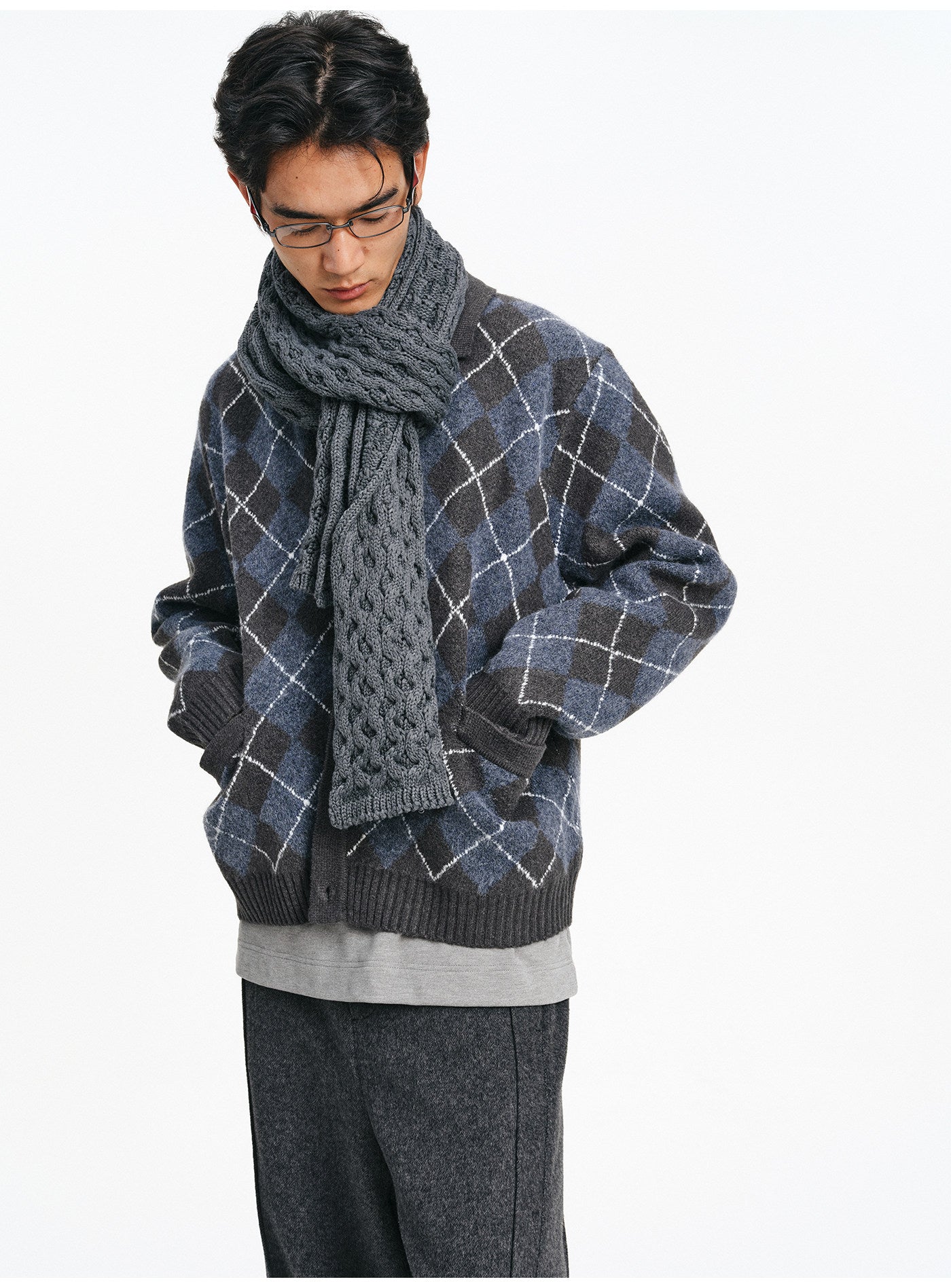 Diamond-pattern cardigan