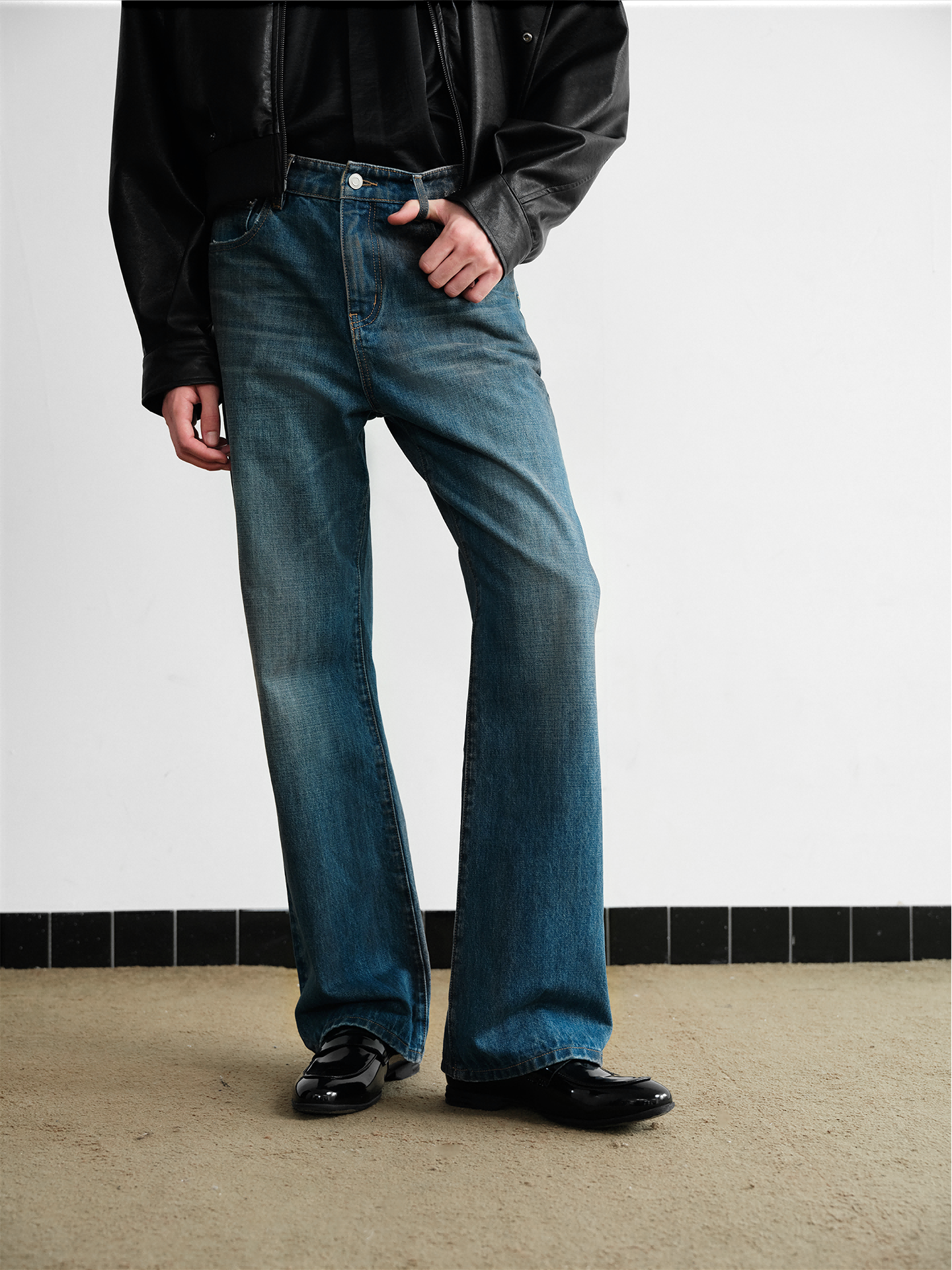 Distressed Straight Leg Jeans
