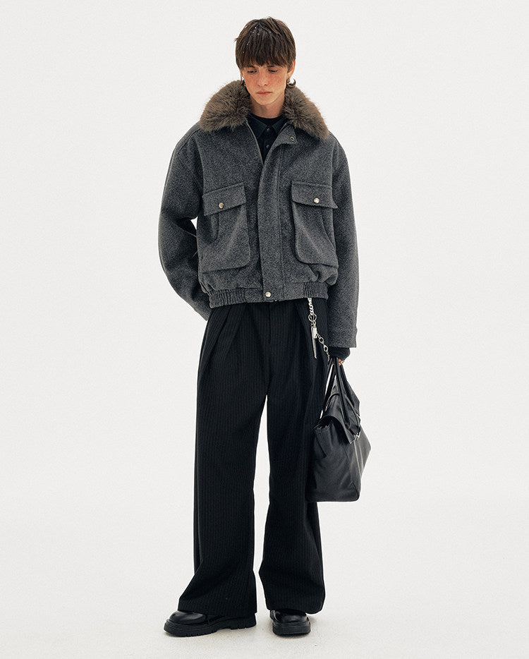 Old Money Style Fur Collar Jacket