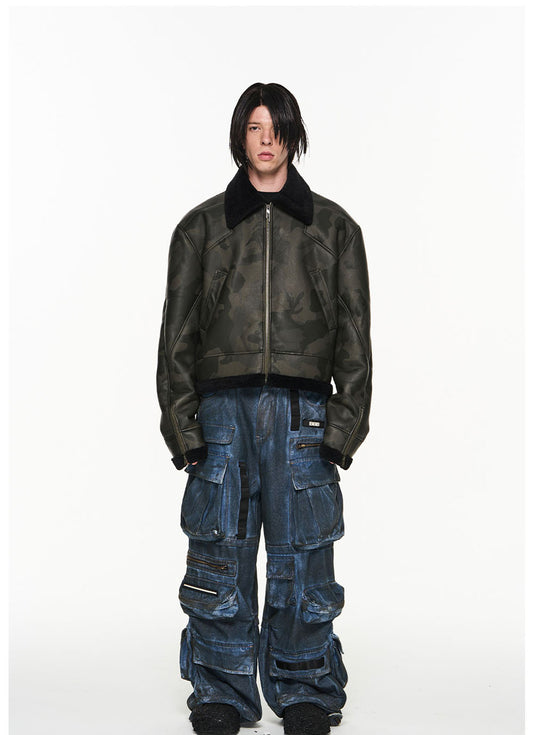 Short Silhouette Camouflage Lambswool Regular Loose Cotton Coat Jacket