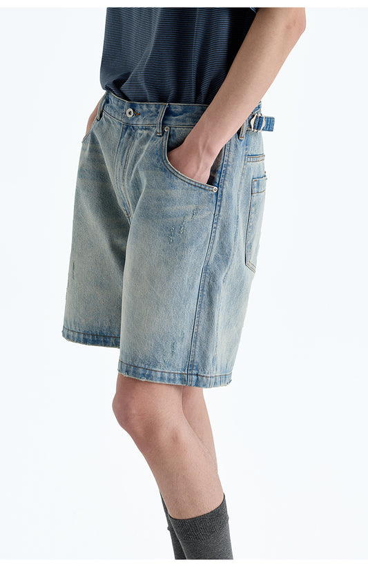 Adjustable waist denim shorts