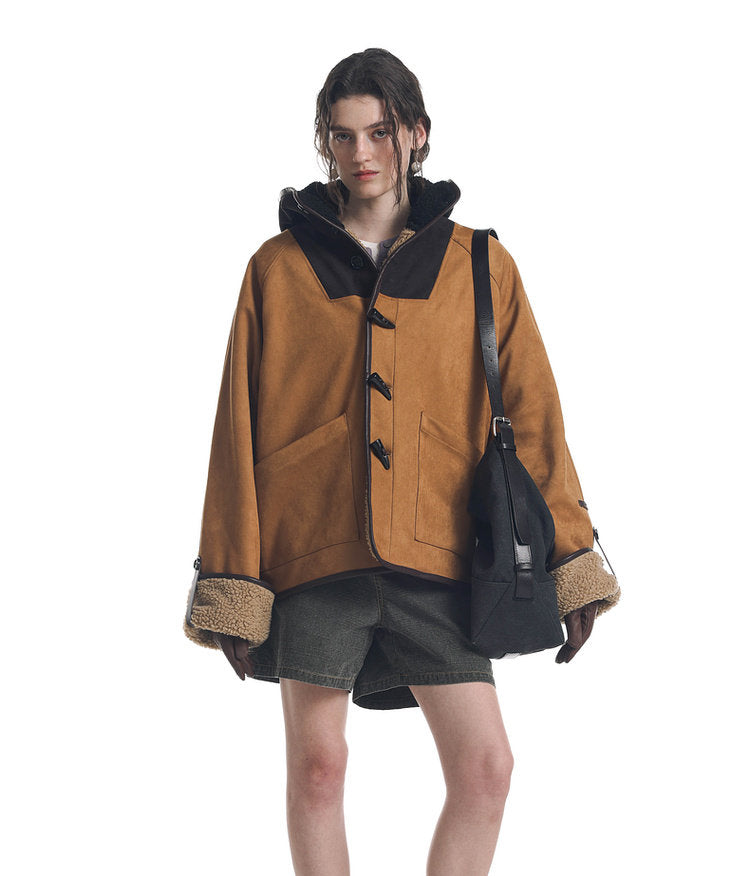 Color Block Horn Button Jacket