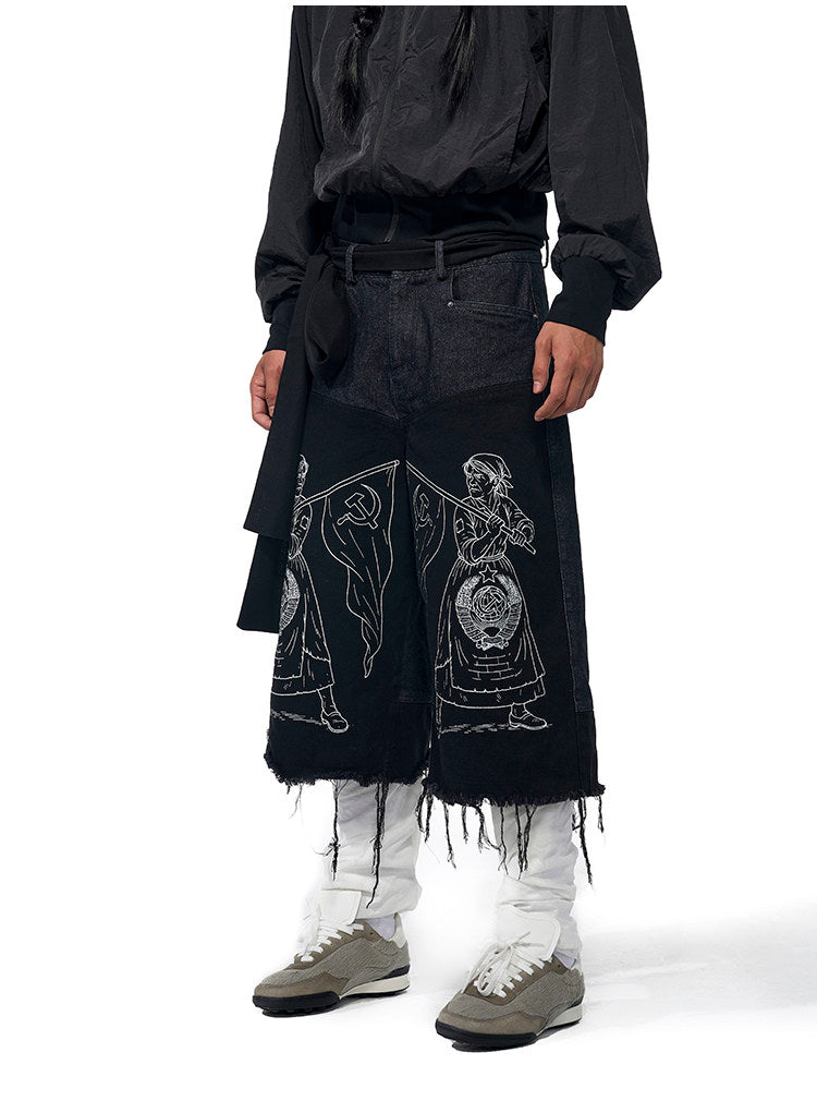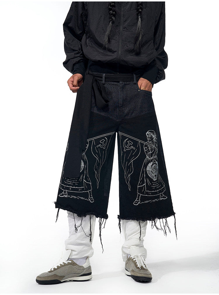 Embroidered Tassel Cropped Jeans