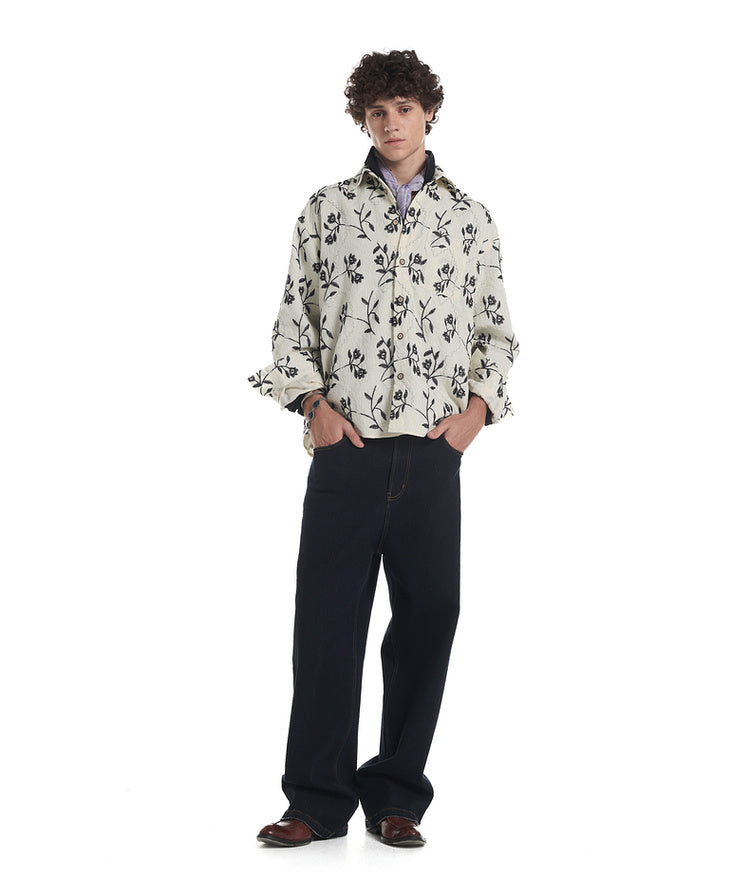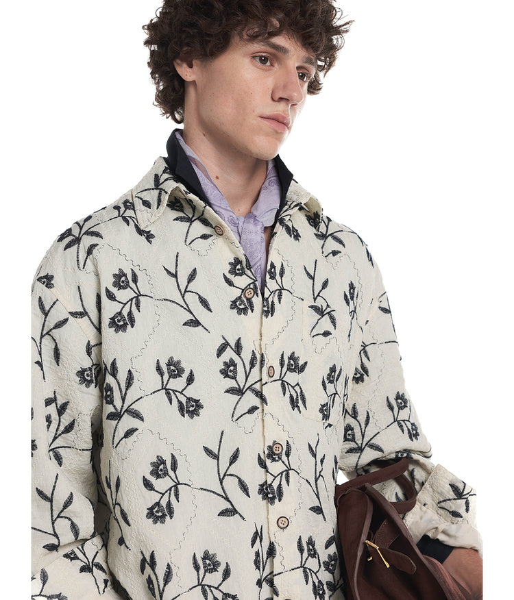 Resort-style shirt with embroidery throughout