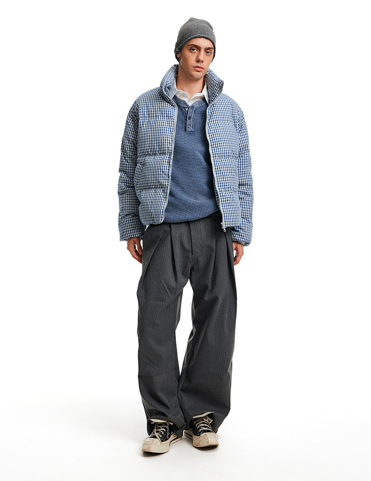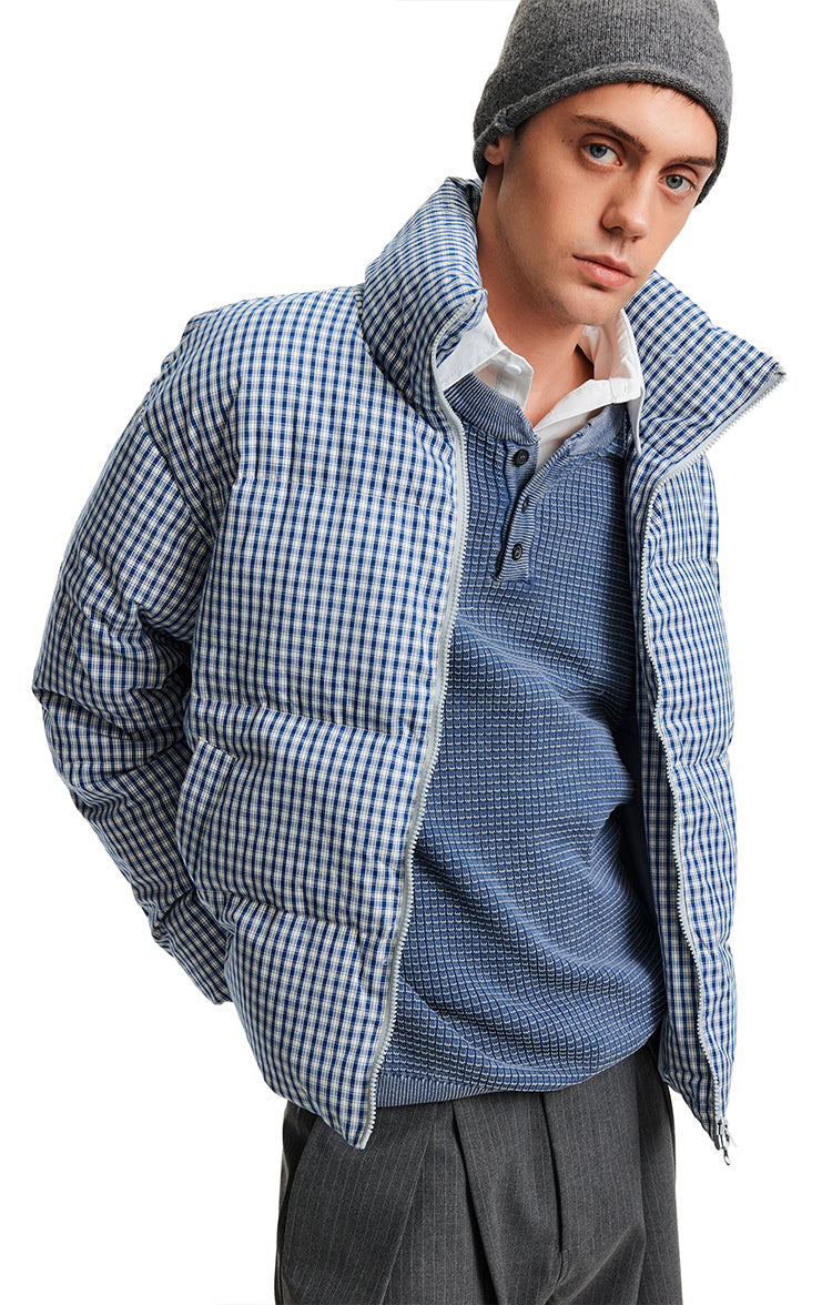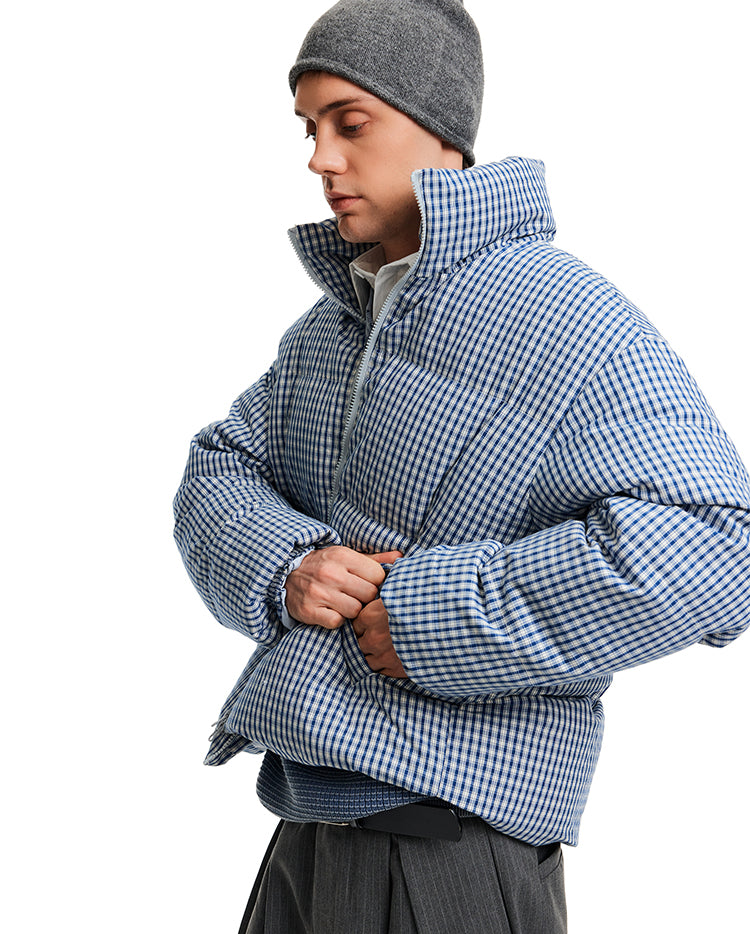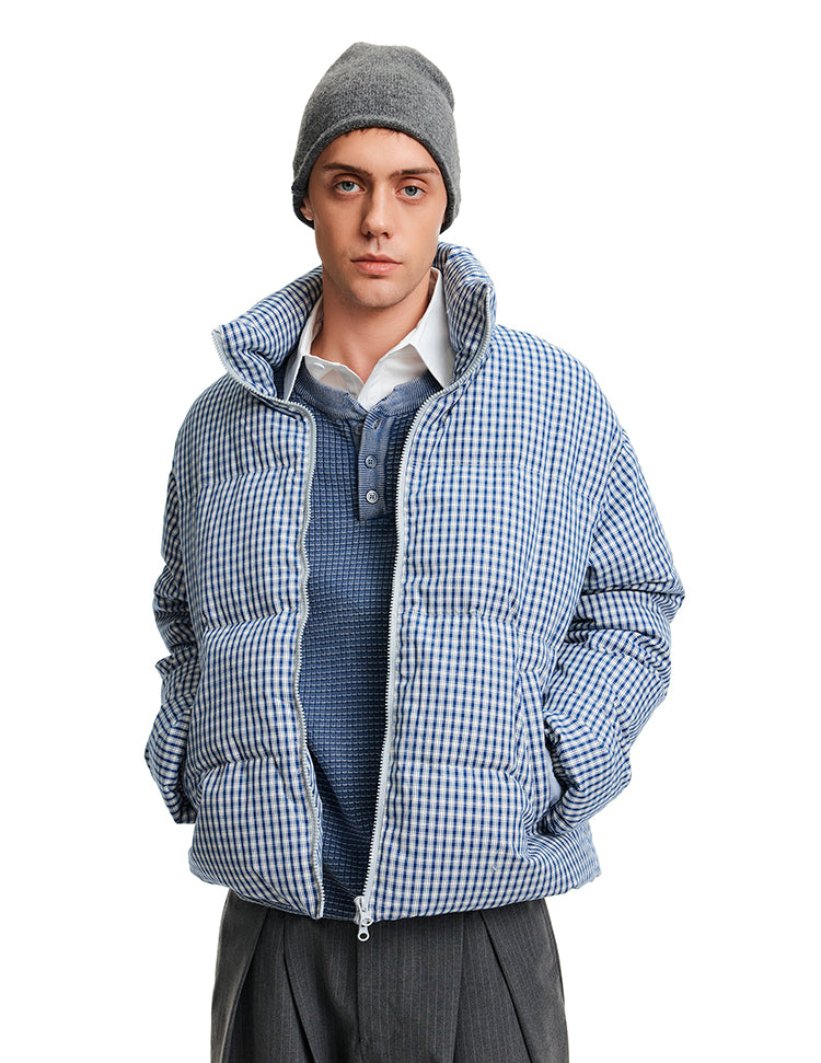 Stand Collar Check Pattern Down Jacket