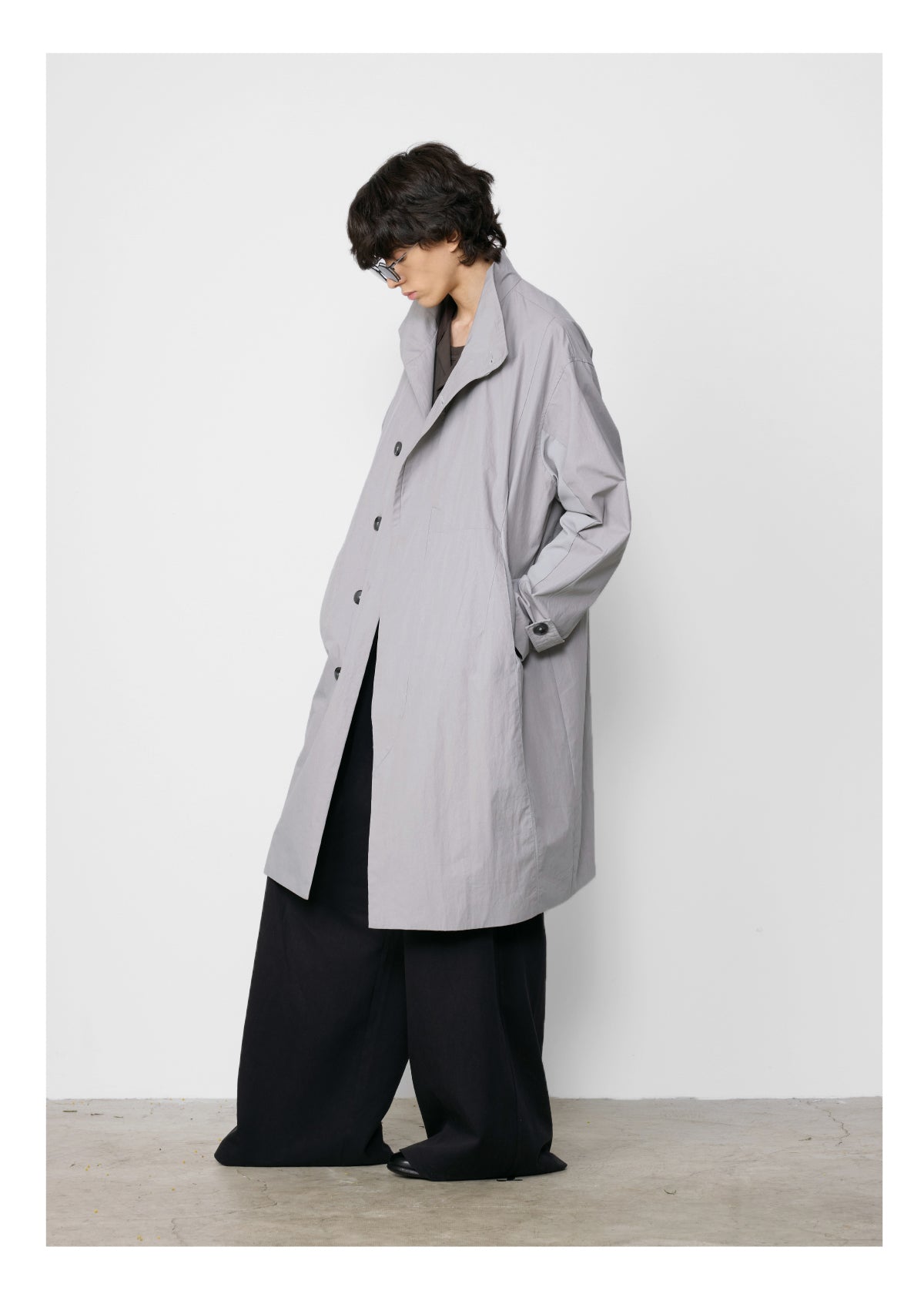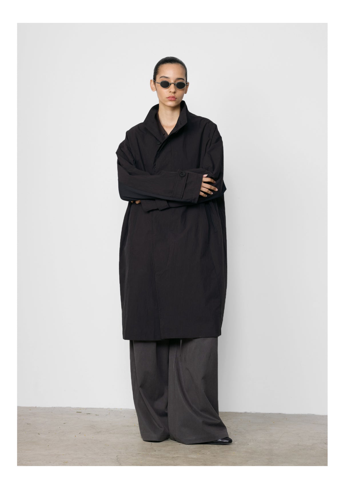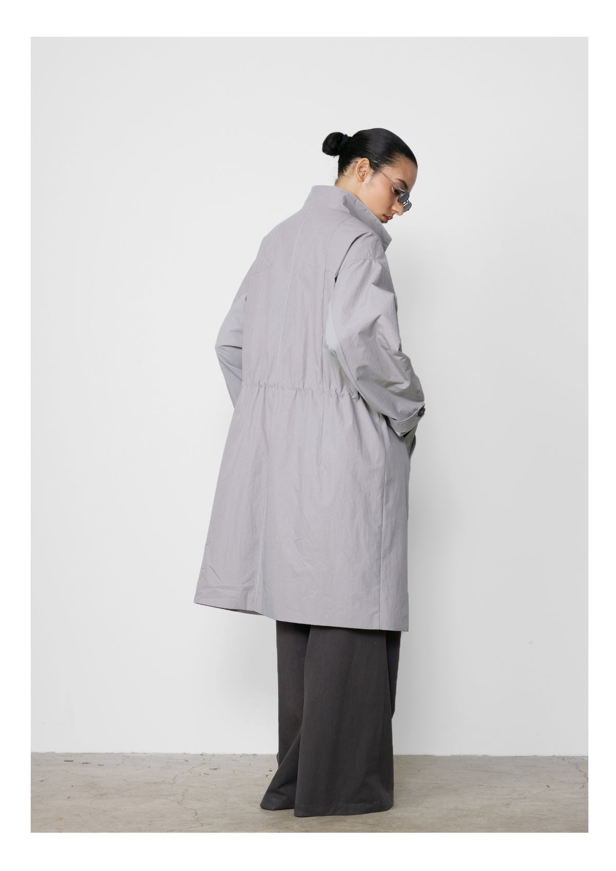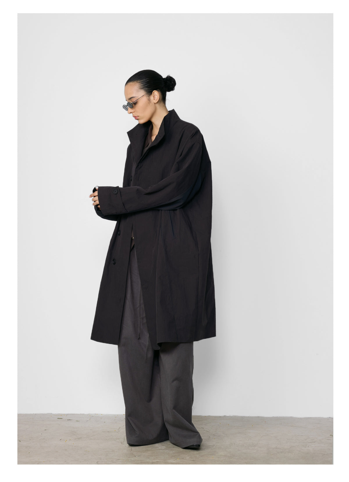 Stand collar mid-length coat