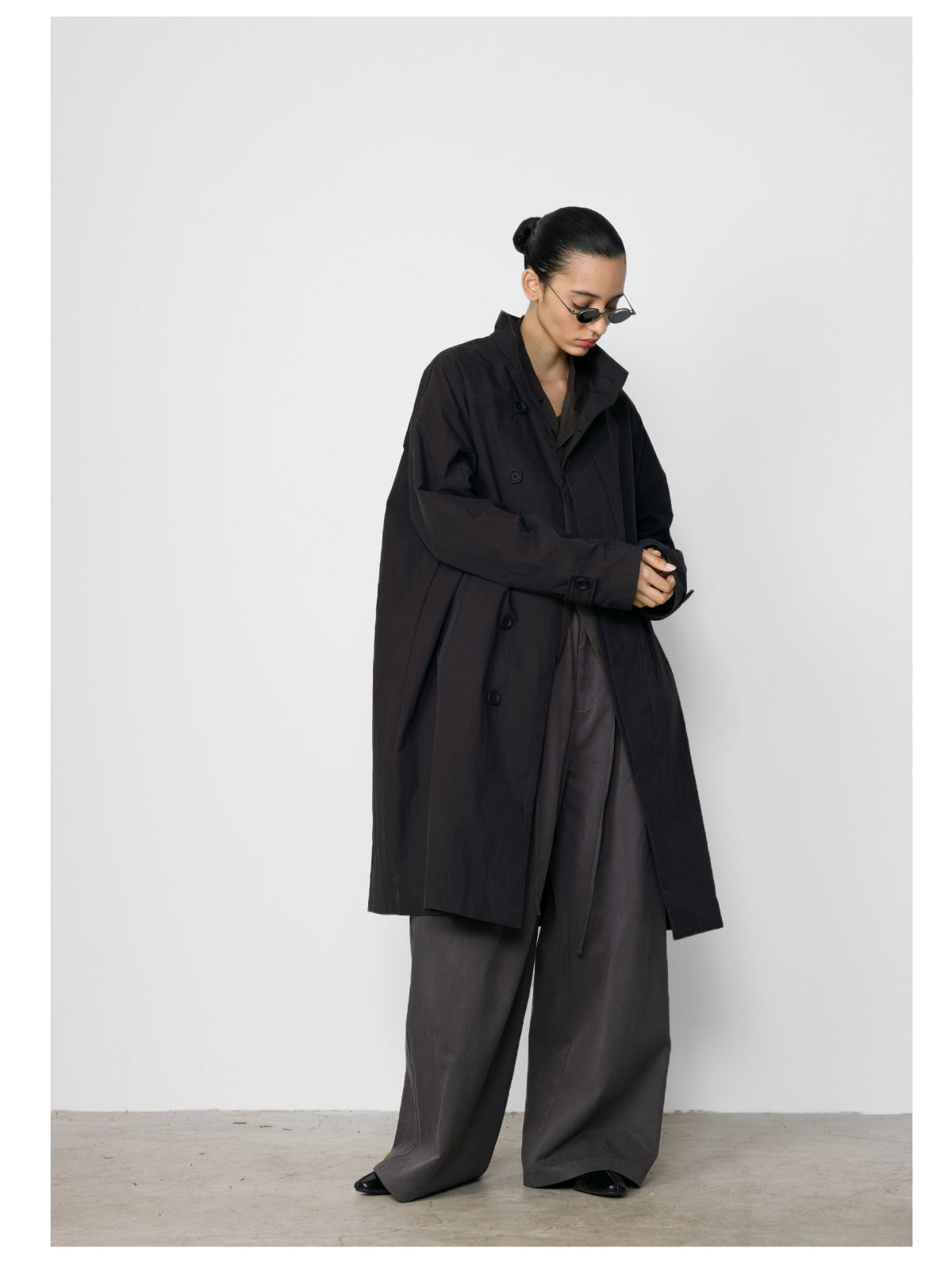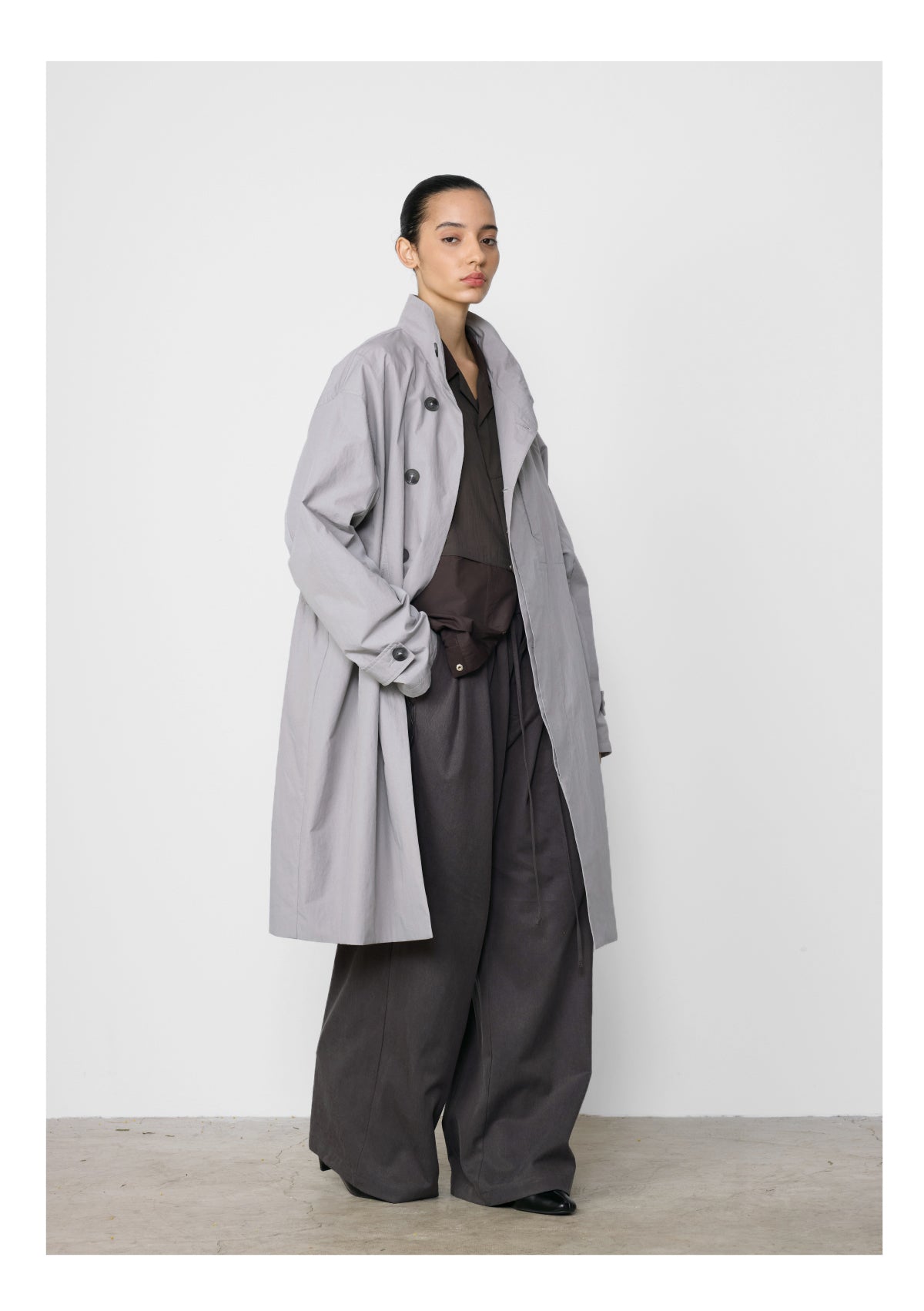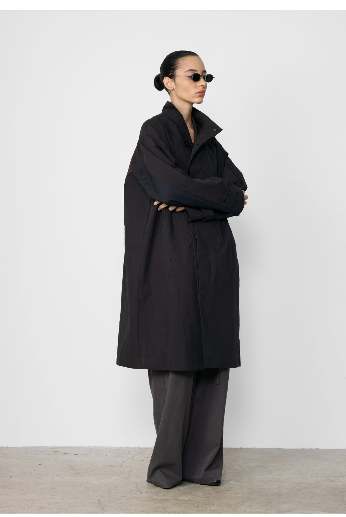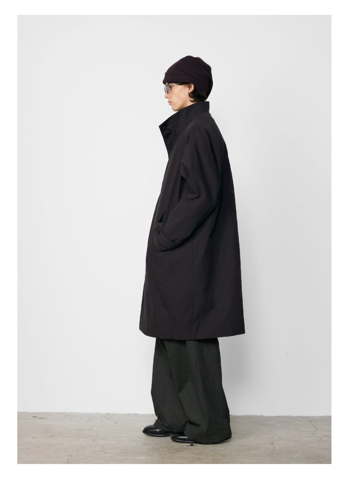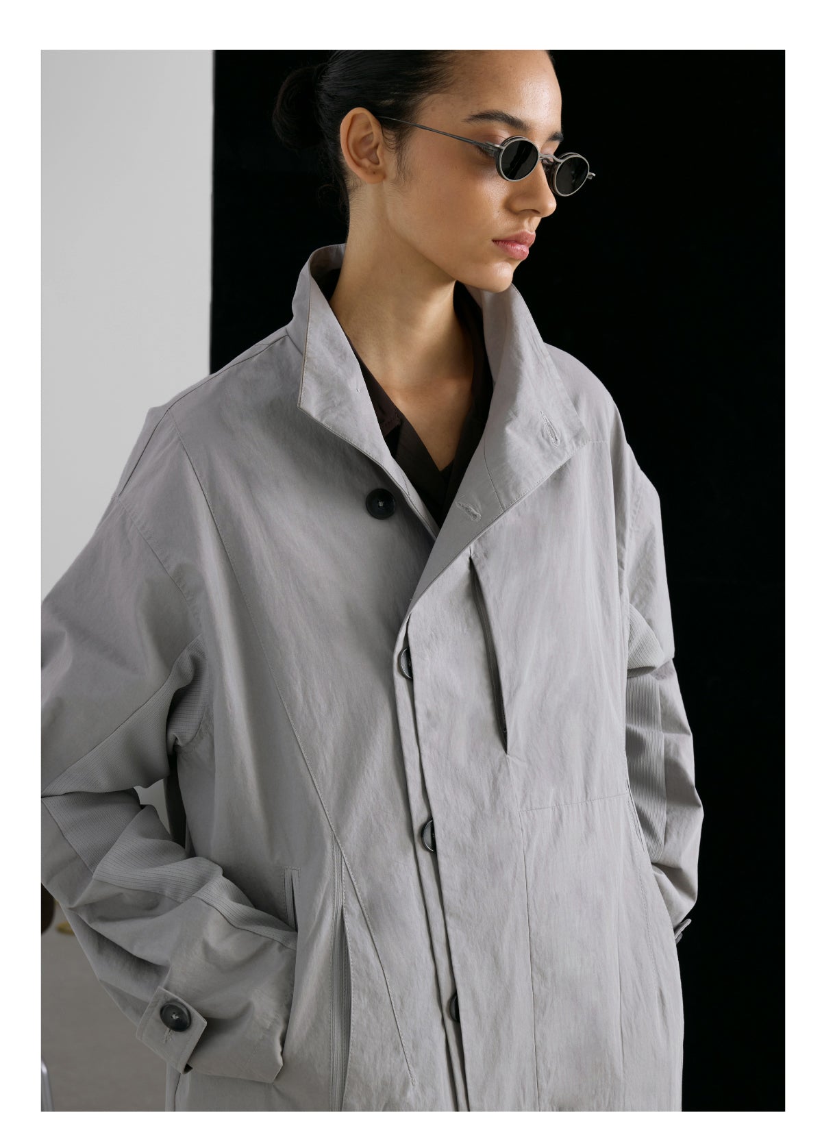 Stand collar mid-length coat