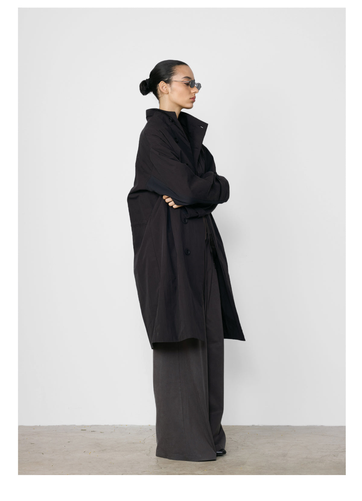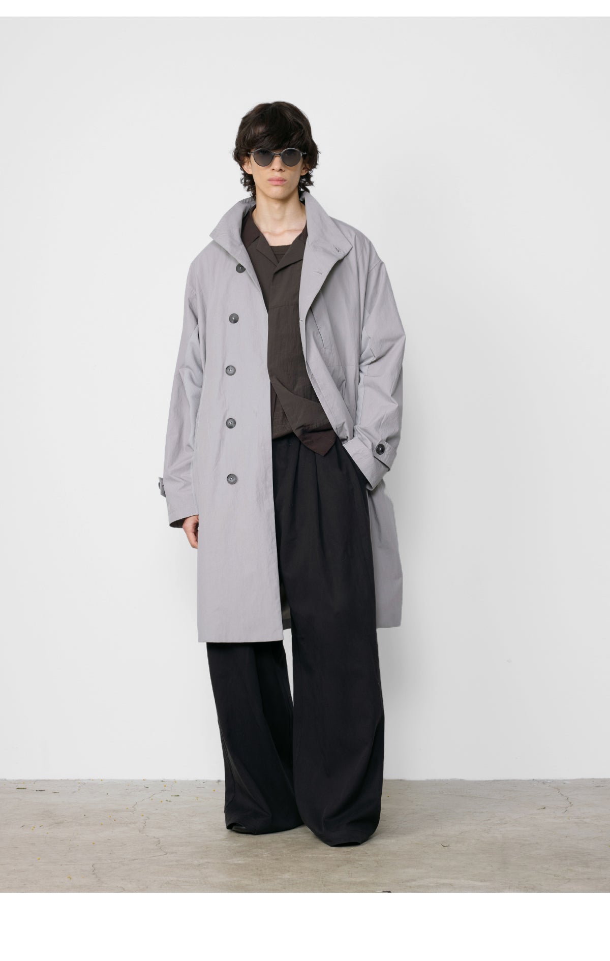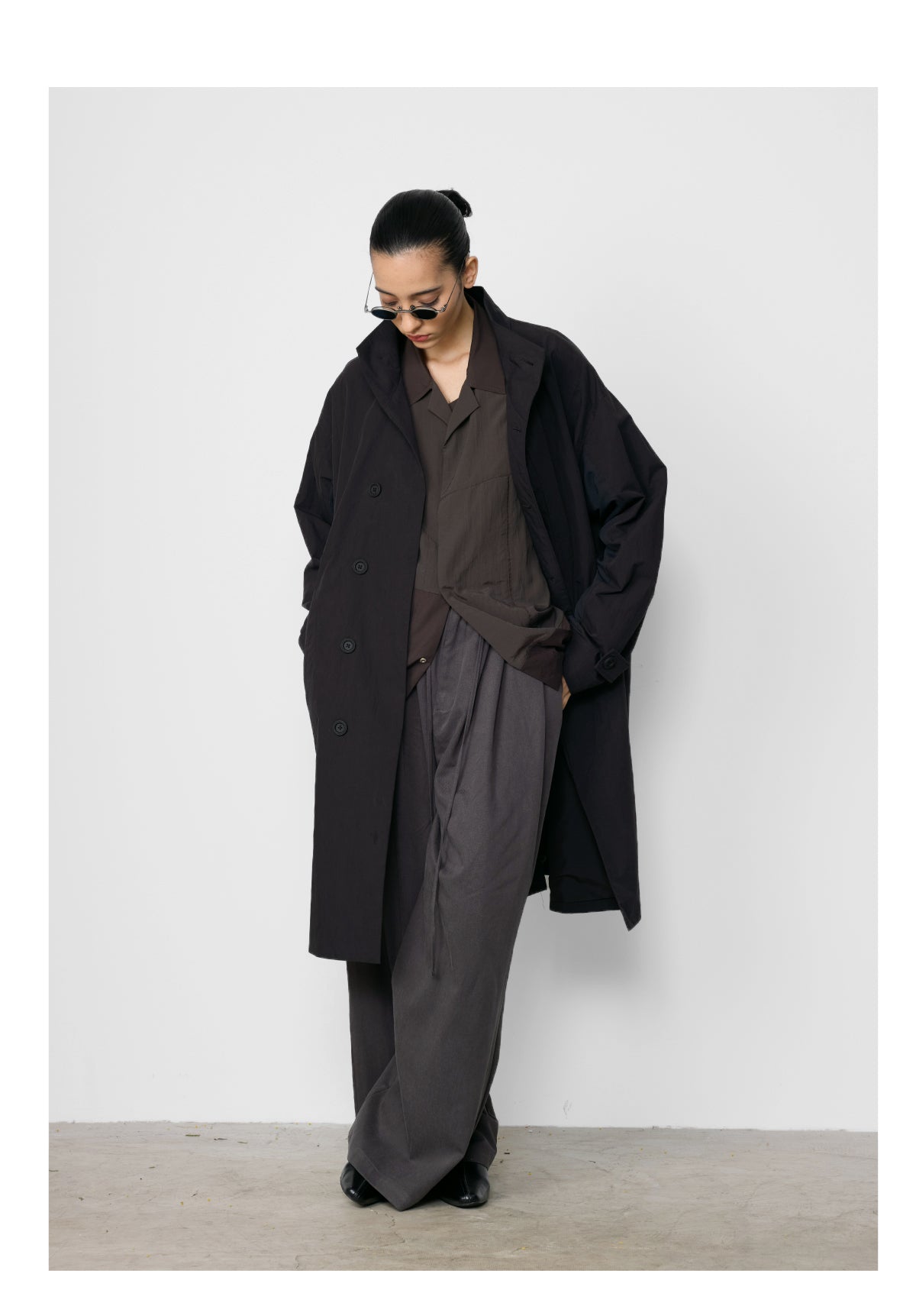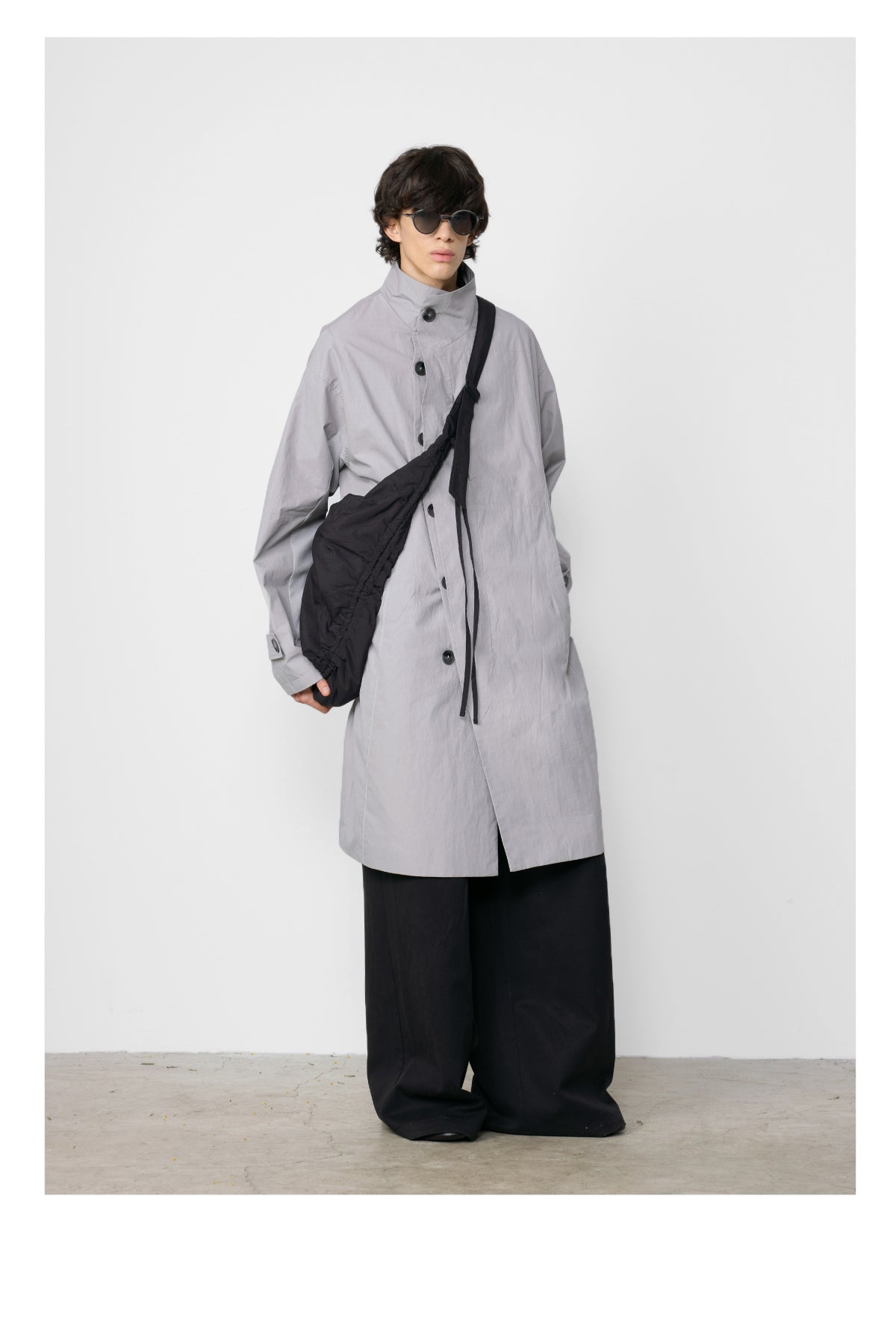 Stand collar mid-length coat