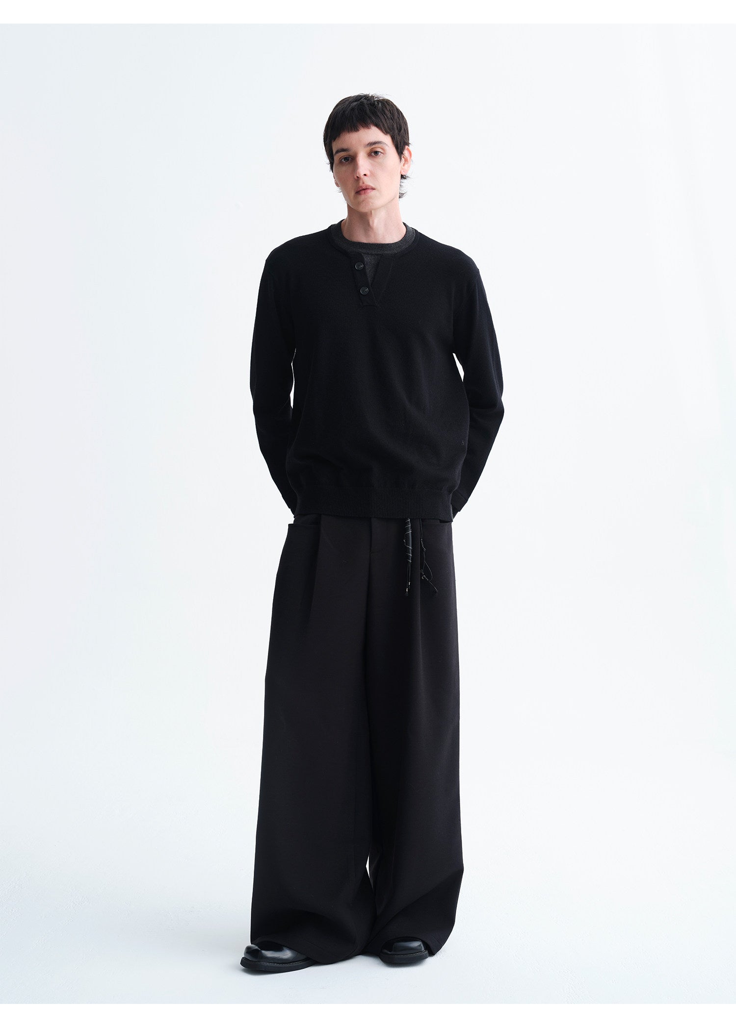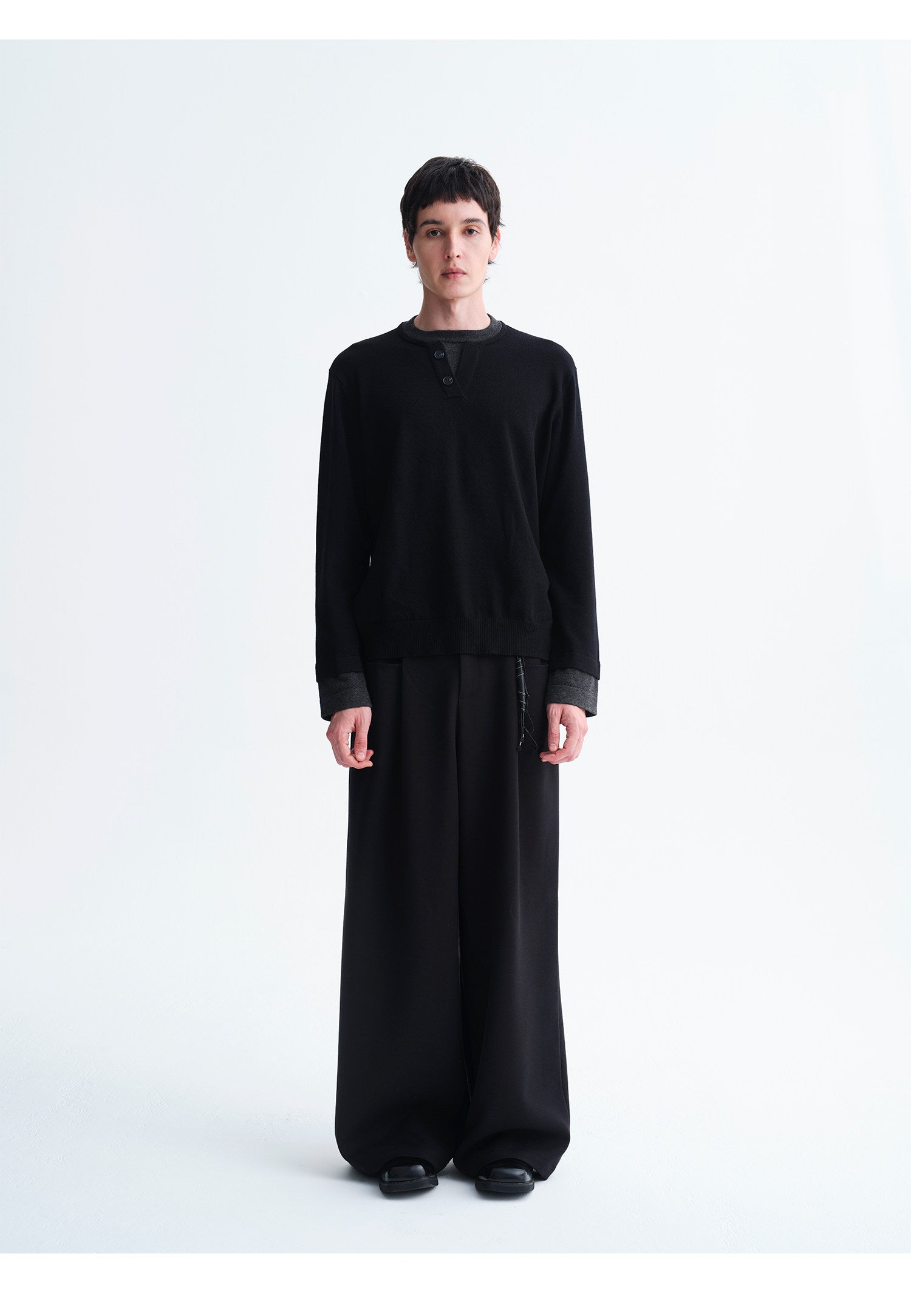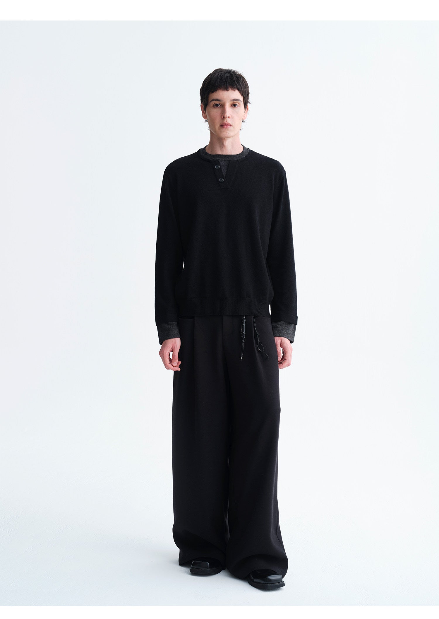 Faux Two-Piece Henley Collar Sweater