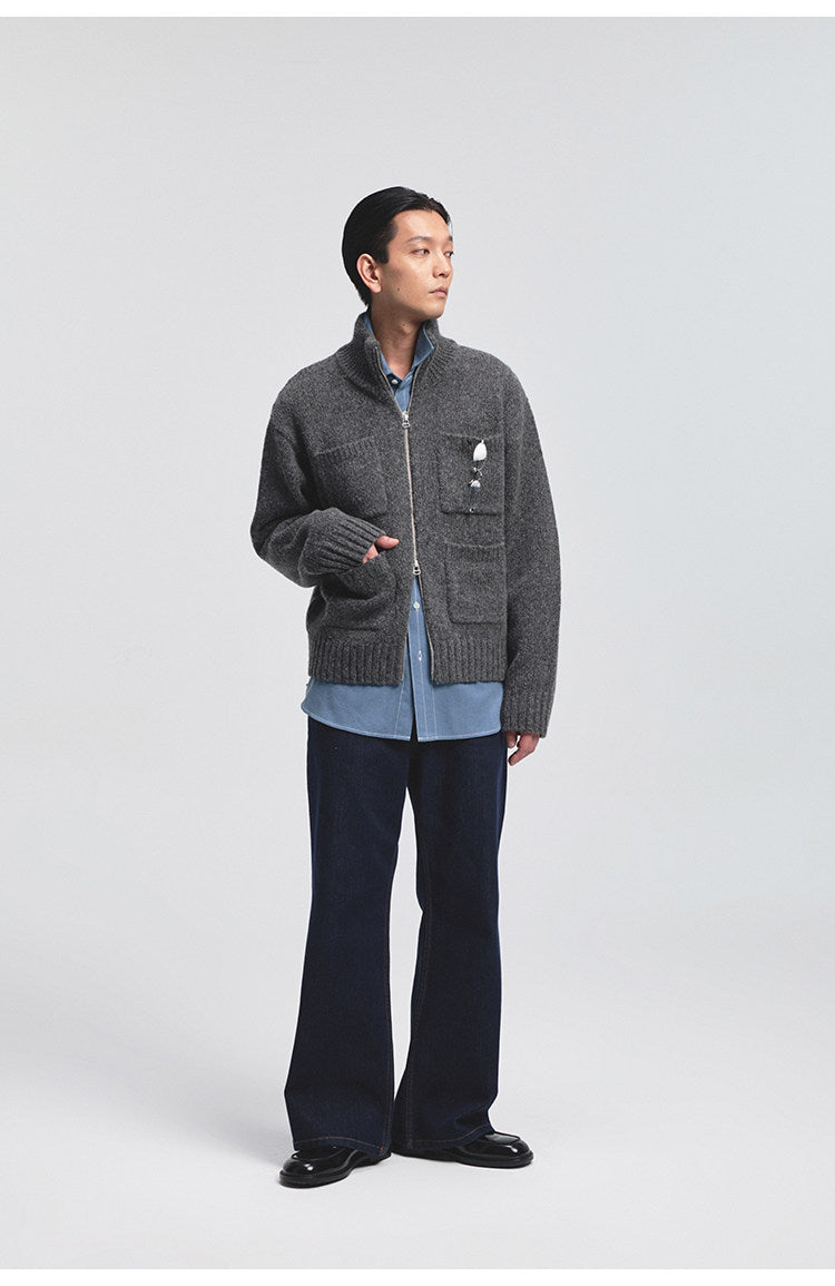 Turtleneck Multi-Pocket Cardigan
