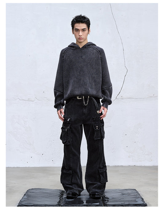 Heavy wash hooded sweater