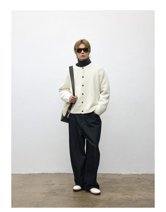 Loose-Fit Crew Neck Cardigan