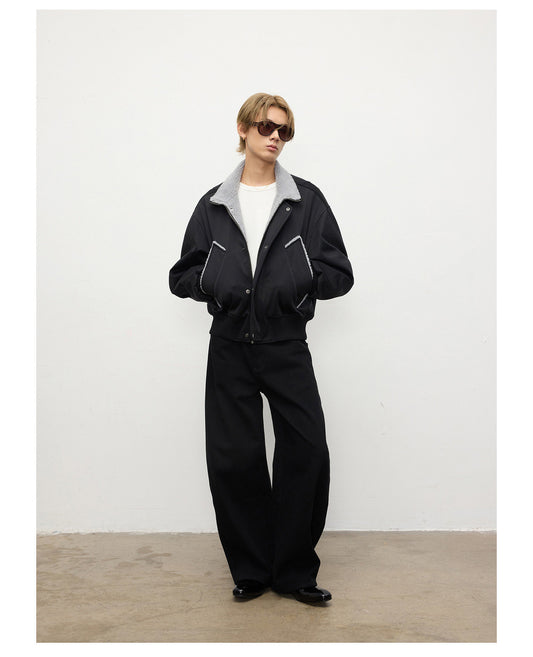 Fleece-Lined Oversized Bomber Jacket