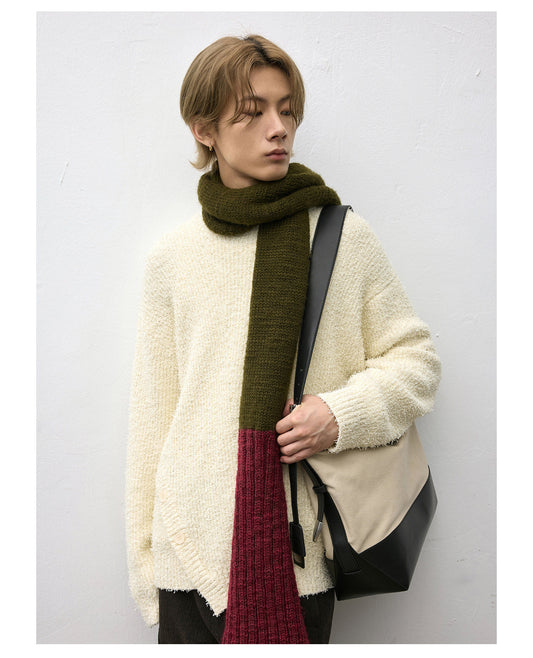 Asymmetrical bias-cut crewneck sweater