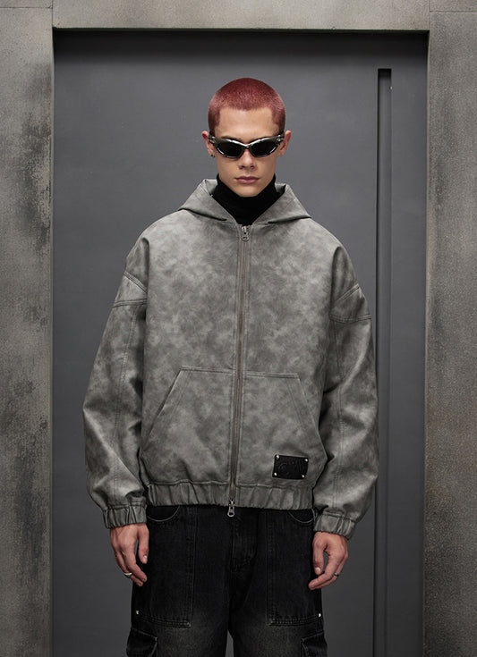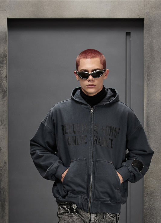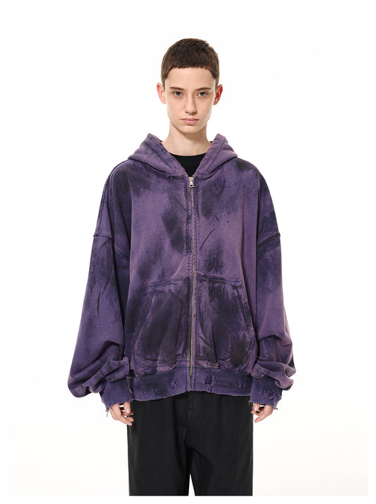 Damaged hooded zipper sweatshirt