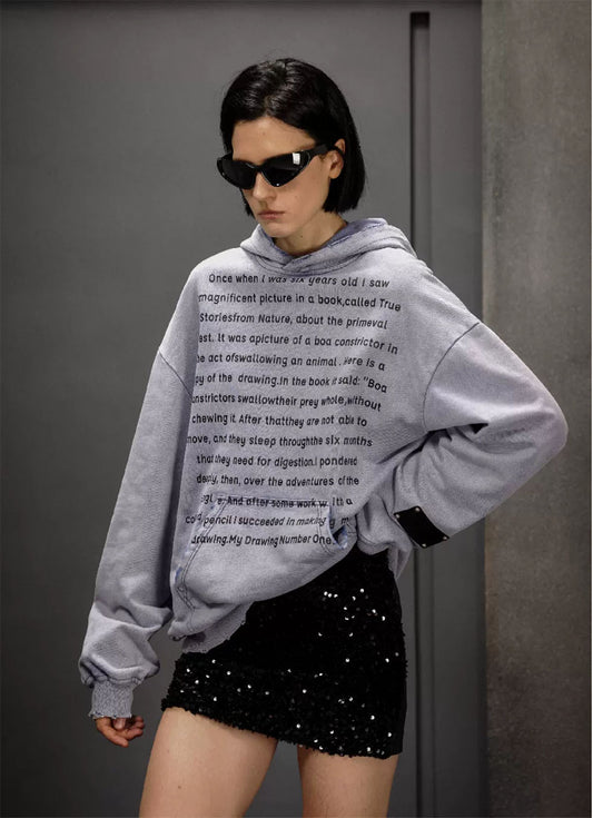 Washed Damaged Pullover Hoodie