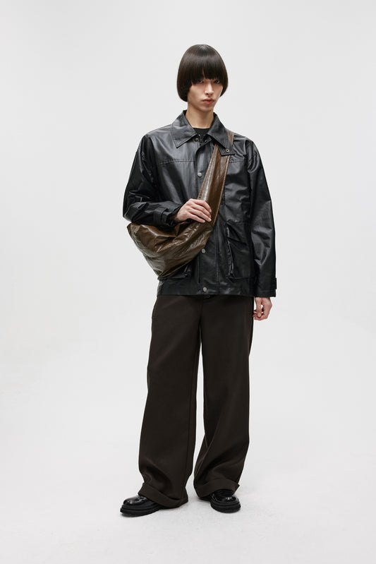 Imitation leather mid-length jacket