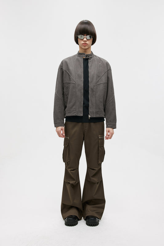 Washed Damaged Stand Collar Jacket