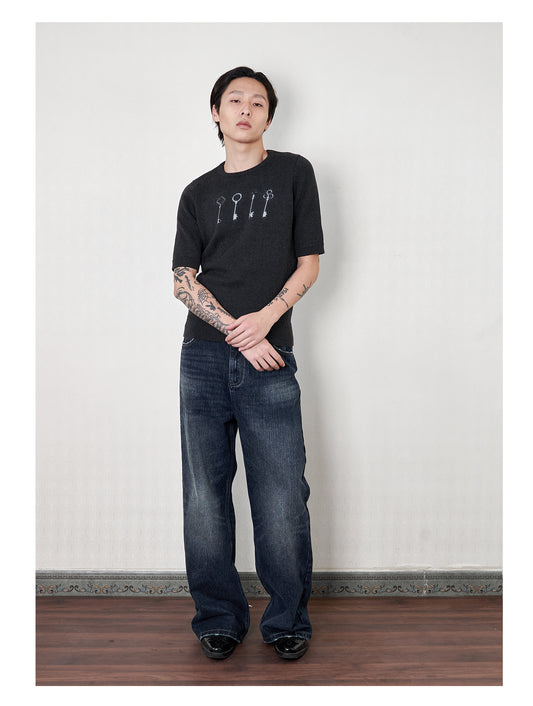 Washed Half Print Jeans