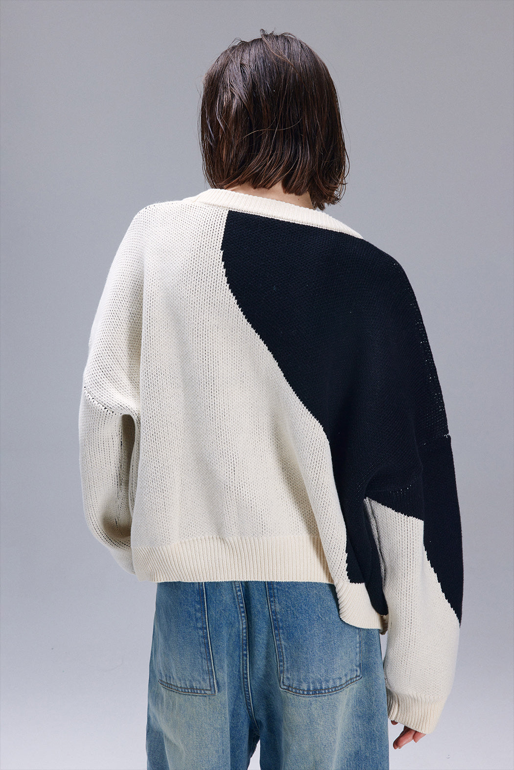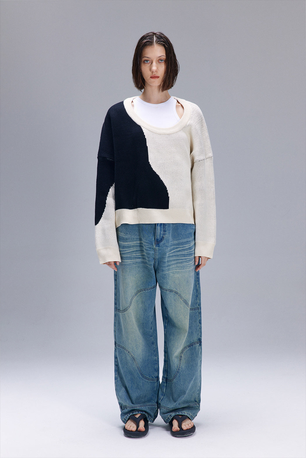Color Block Large Neck Sweater Niche Design Knit Sweater