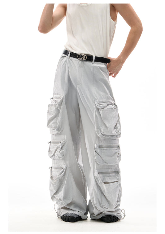 Multi-pocket wide-leg casual pants