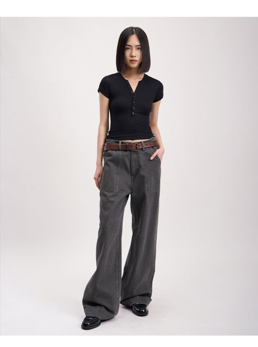 Washed Wide Leg Denim Pants