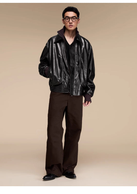 Quilted loose leather casual jacket