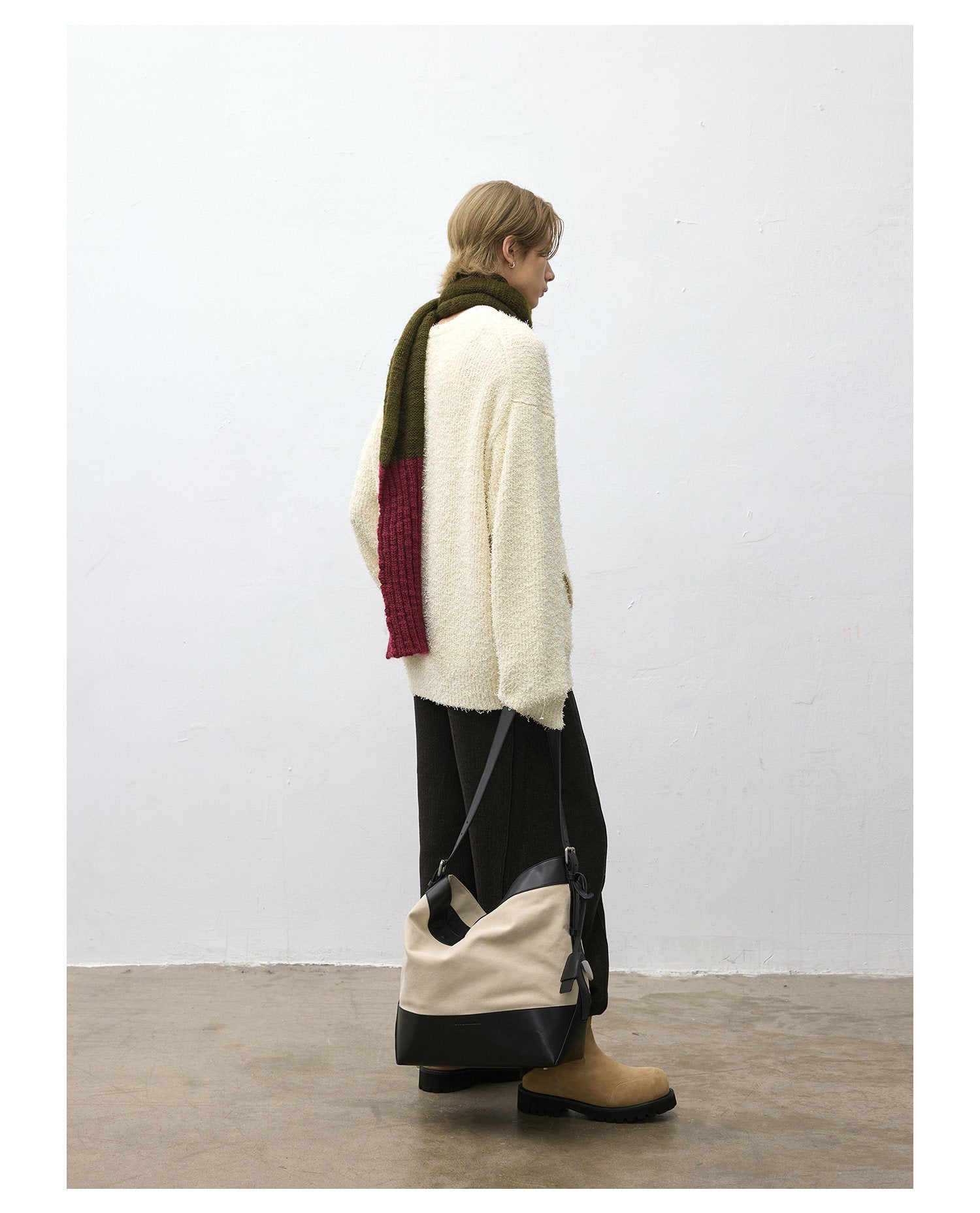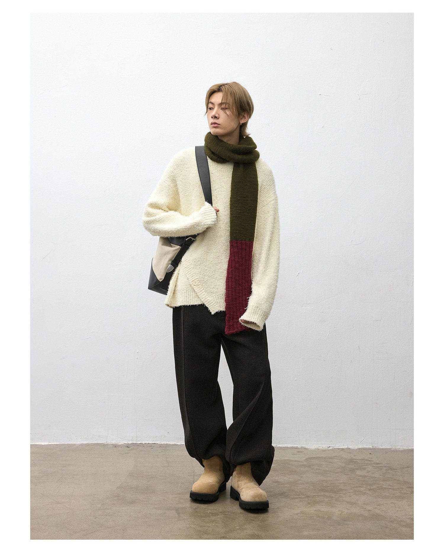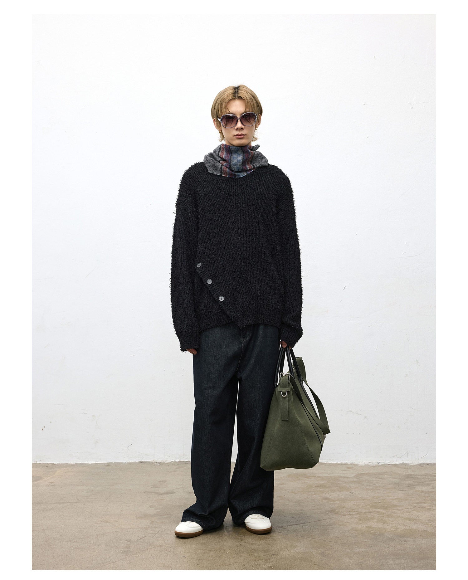 Asymmetrical bias-cut crewneck sweater