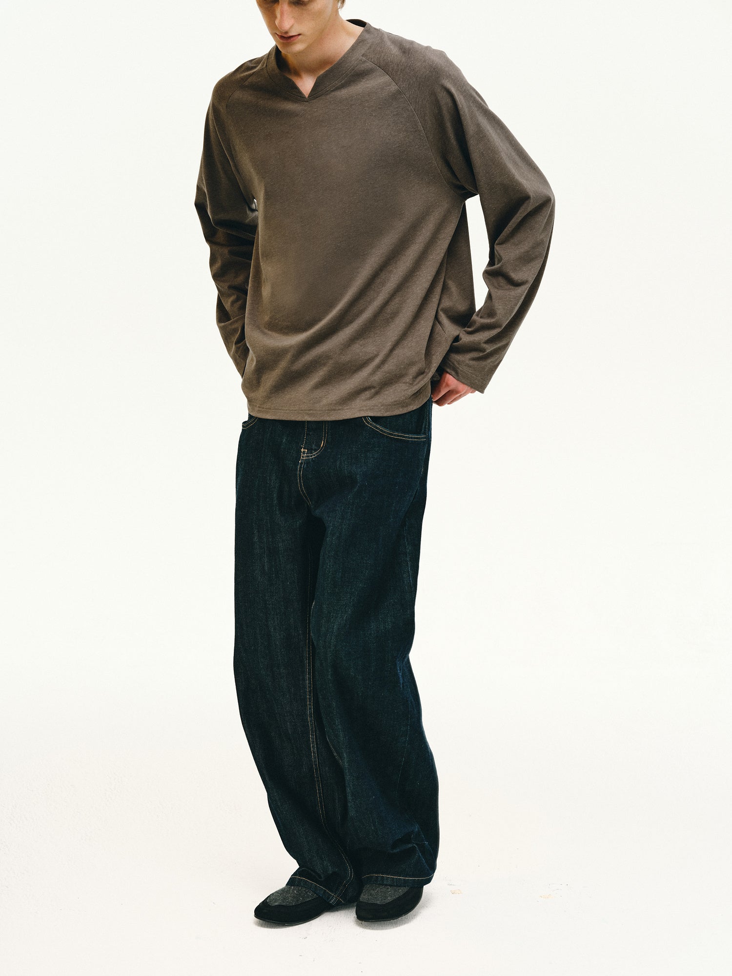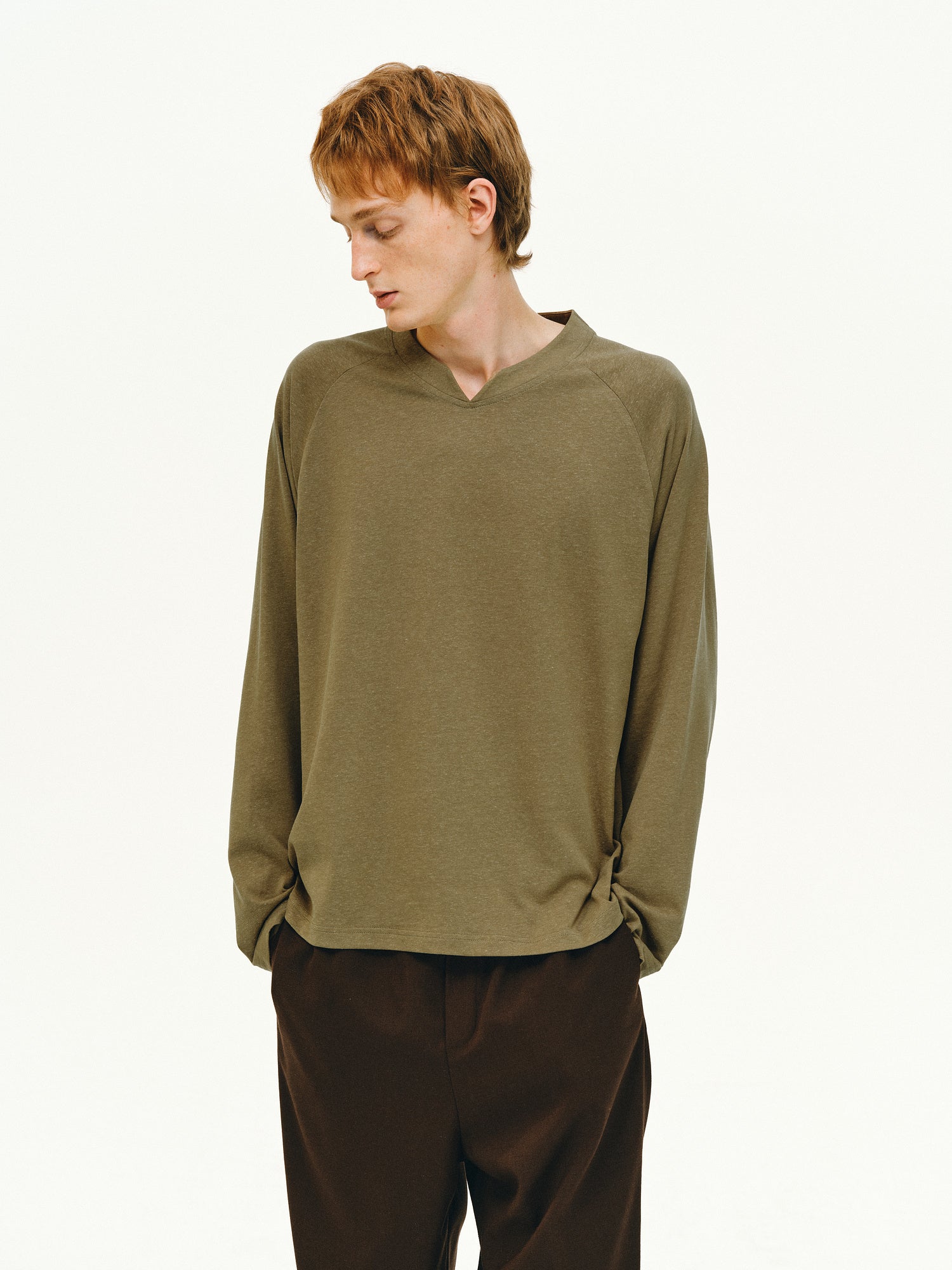 Linen-Blend V-Neck T-Shirt