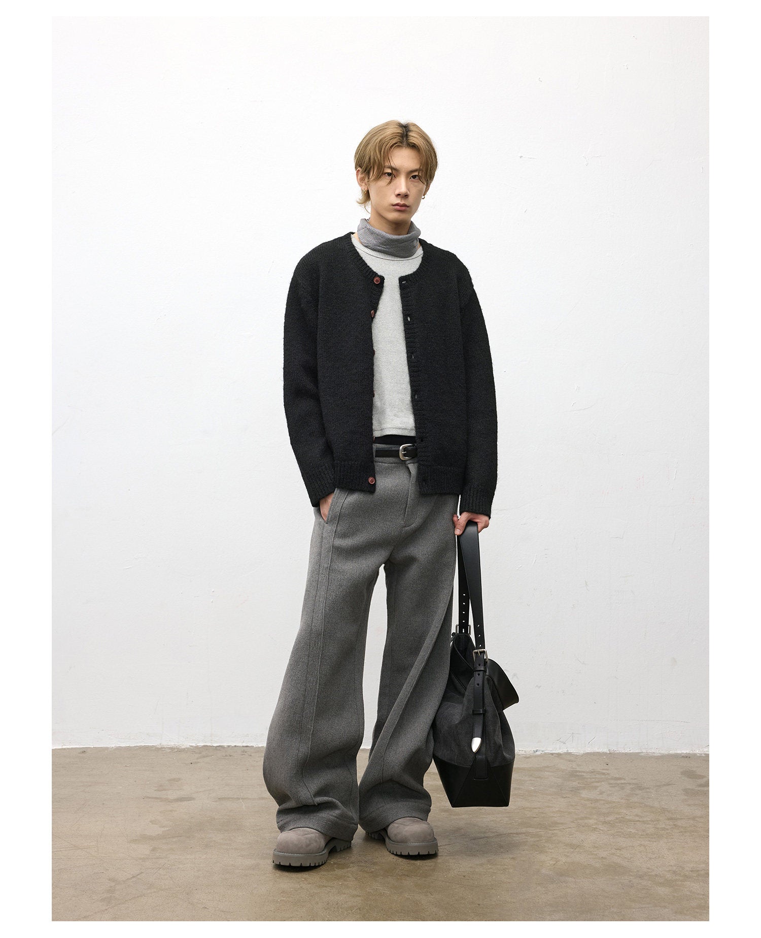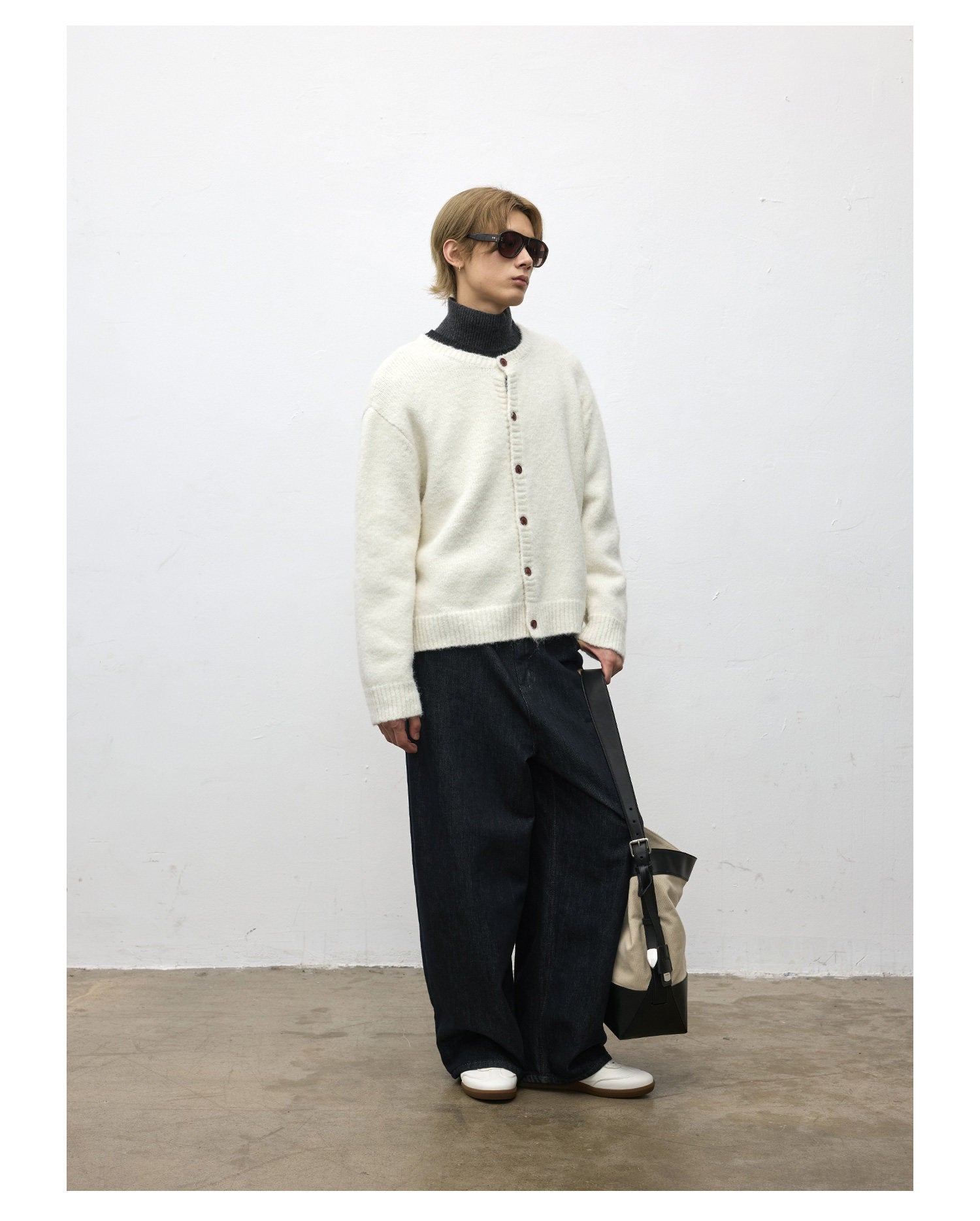 Loose-Fit Crew Neck Cardigan
