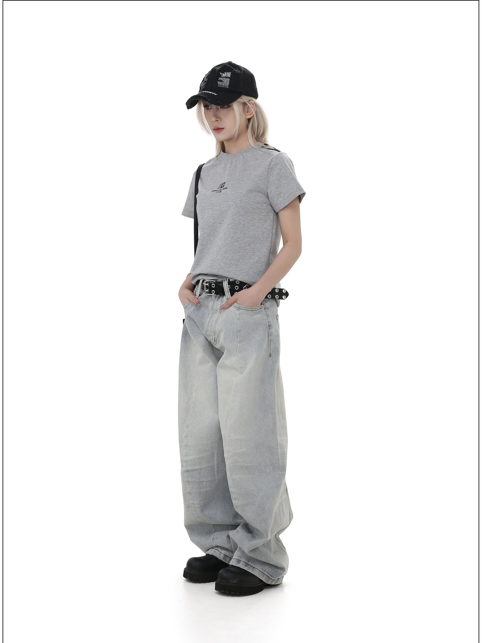 Washed and Damaged Denim Pants