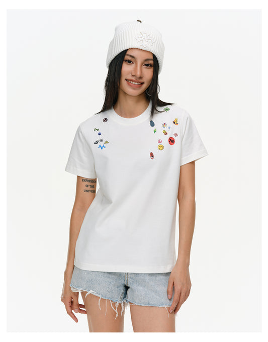 Thick sticker print T-shirt