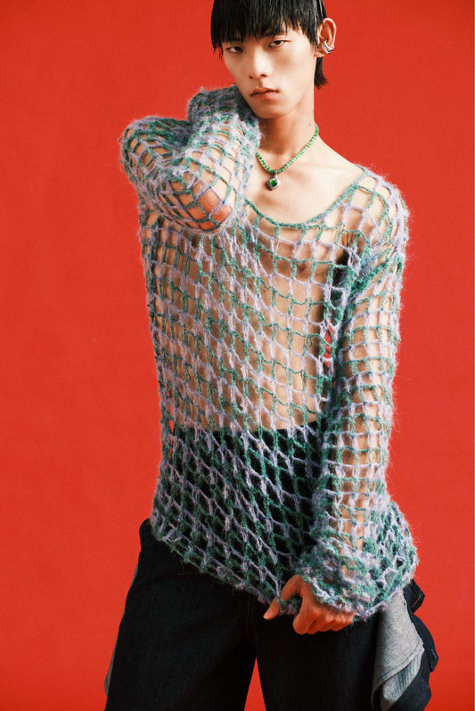 Handmade mesh tights big hole sweater