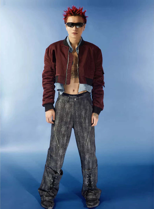 Washed Denim 2 Piece Short Air Force Jacket