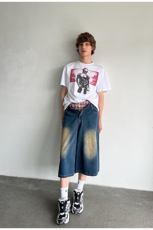 Hand-painted printed short-sleeved shirt