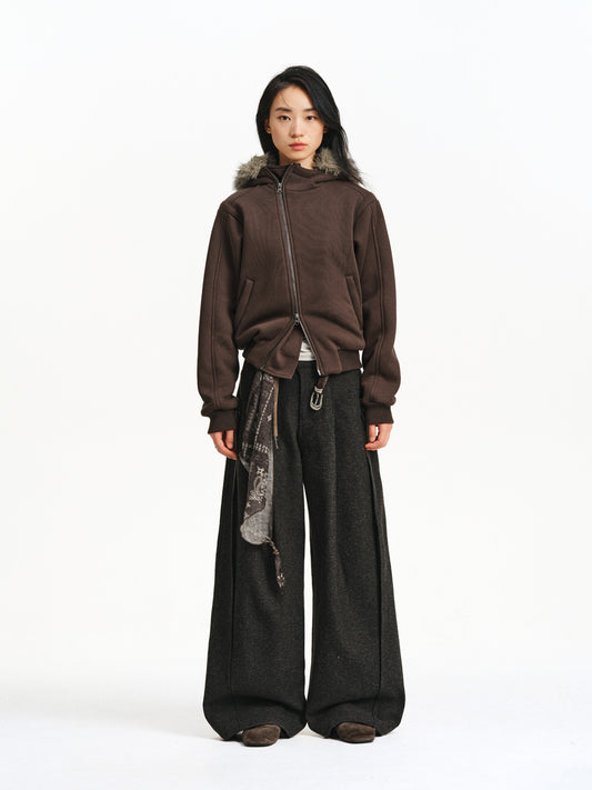 Fur Collar Short Sweatshirt