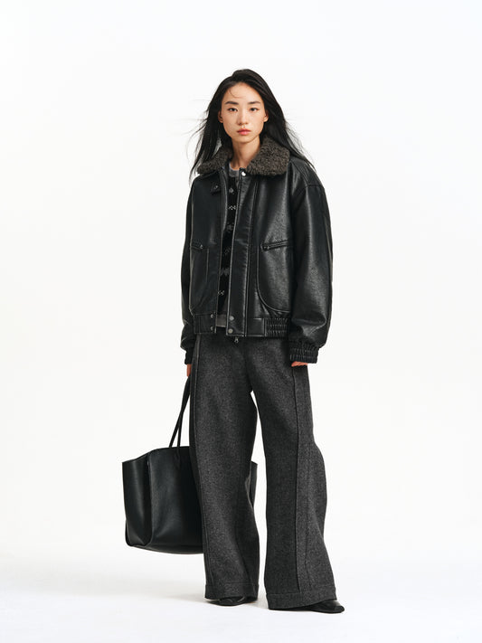Detachable Collar PU Leather Jacket