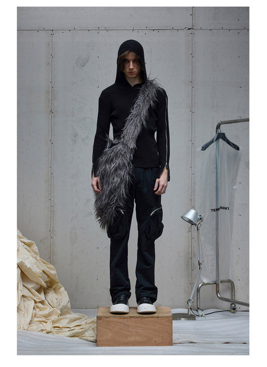 Hooded sweater with double zipper sleeves